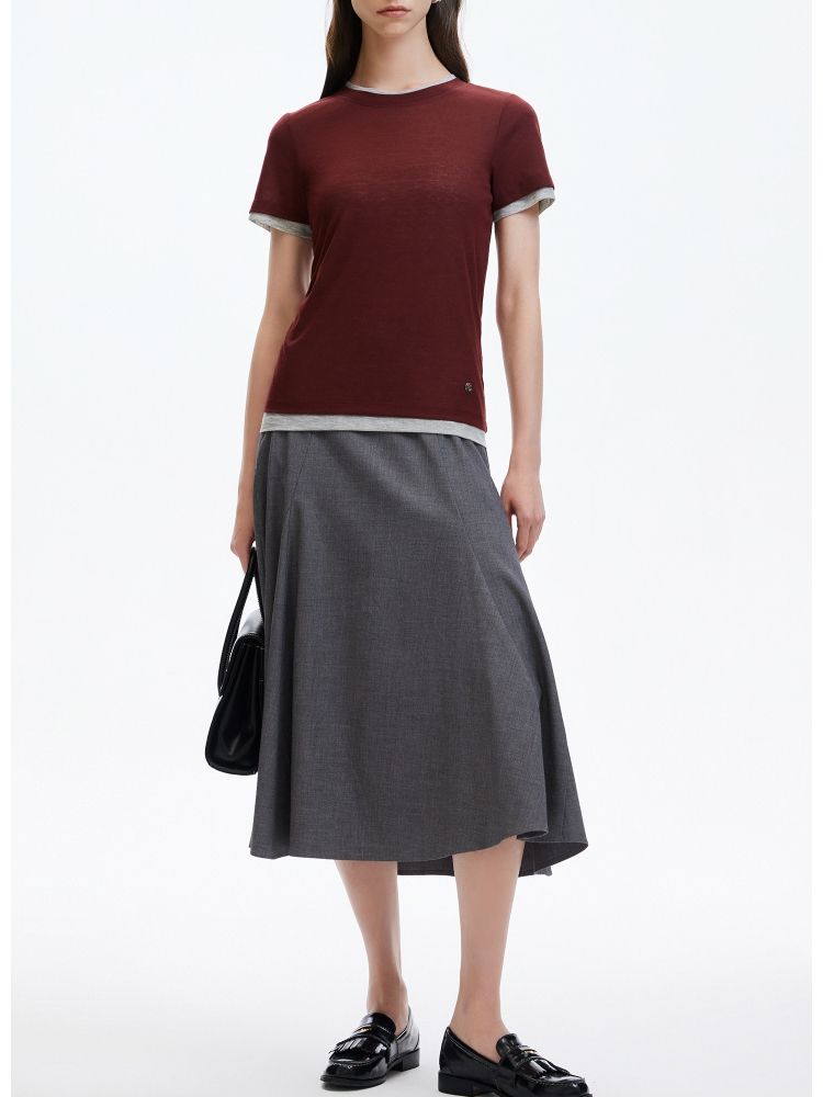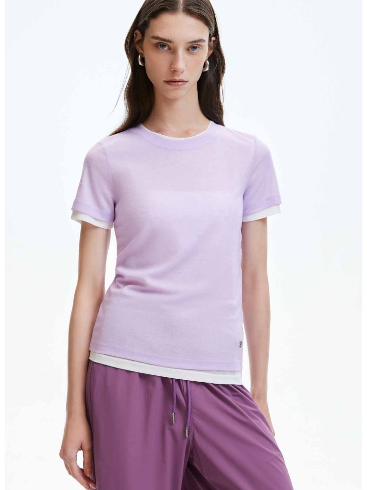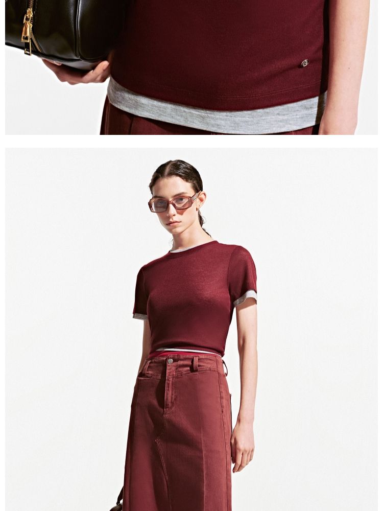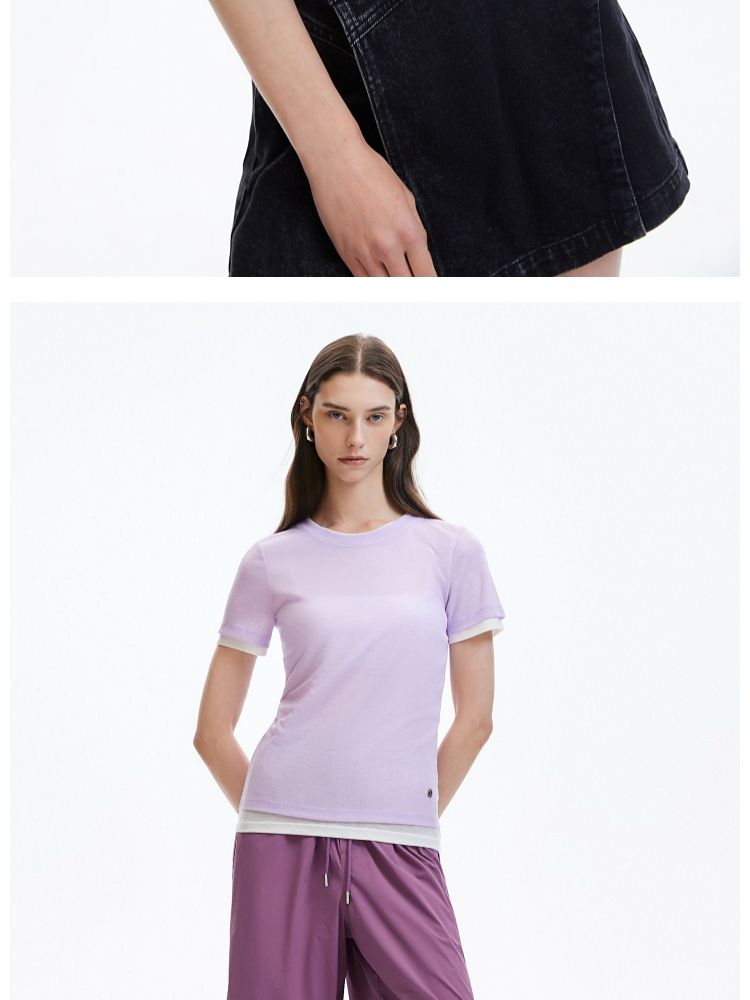 【修身短款】夏季时尚舒适叠穿撞色设计套装T恤女 922906