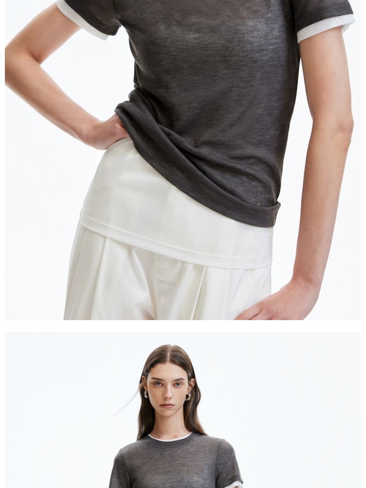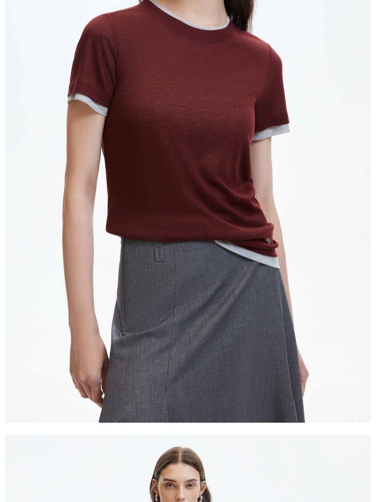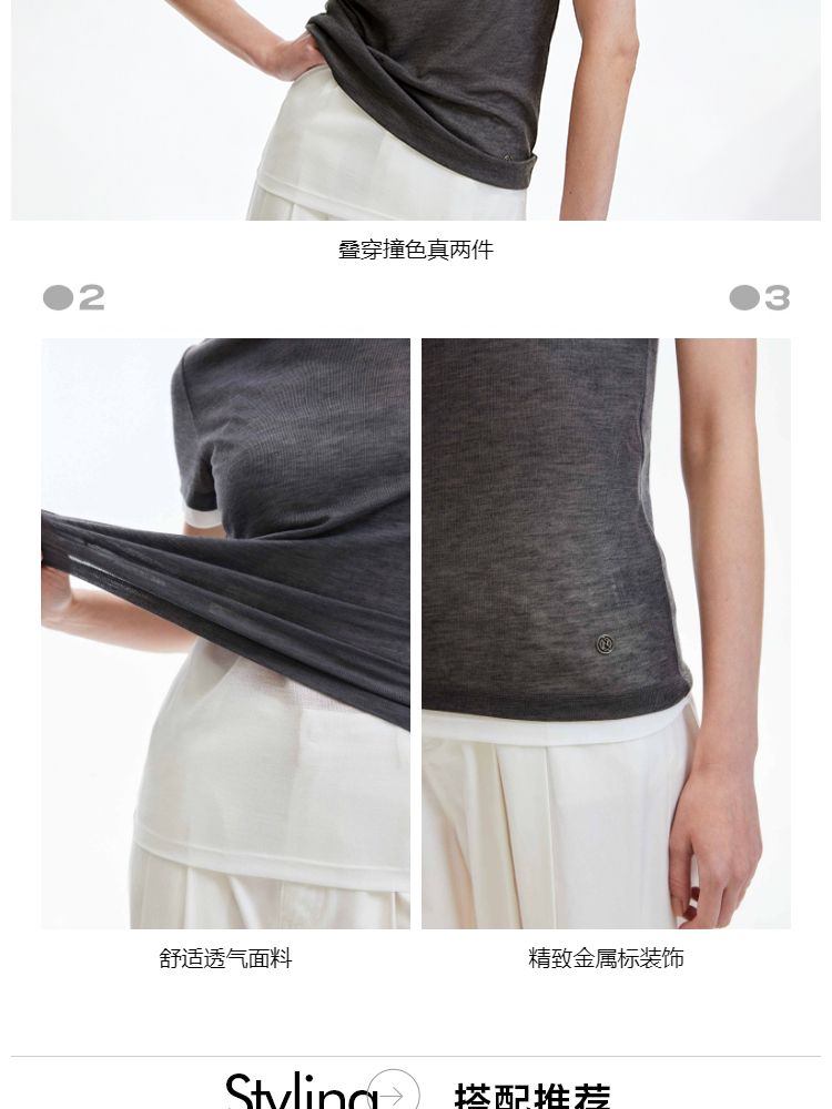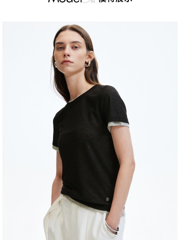 商品名称:【修身短款】夏季时尚舒适叠穿撞色设计套装T恤女 922906