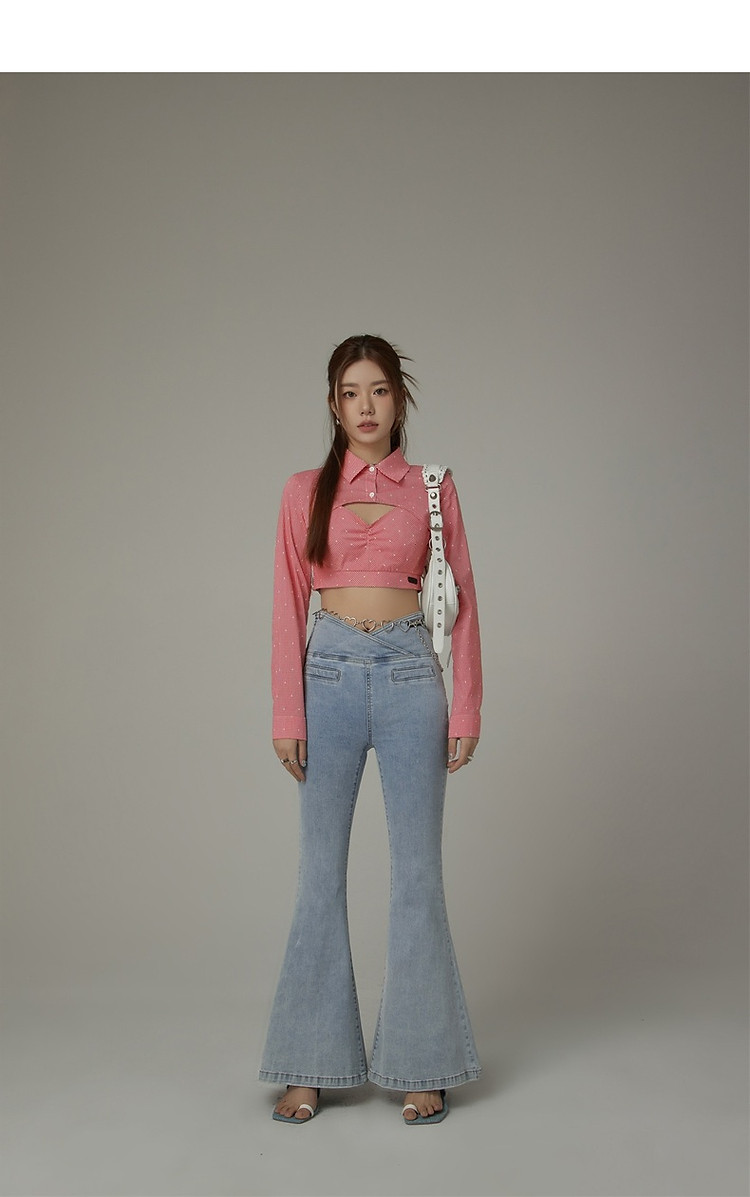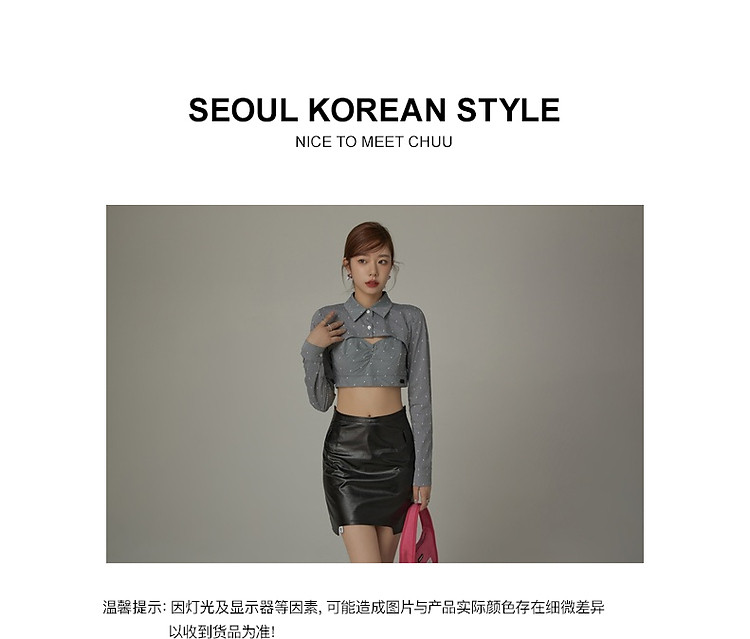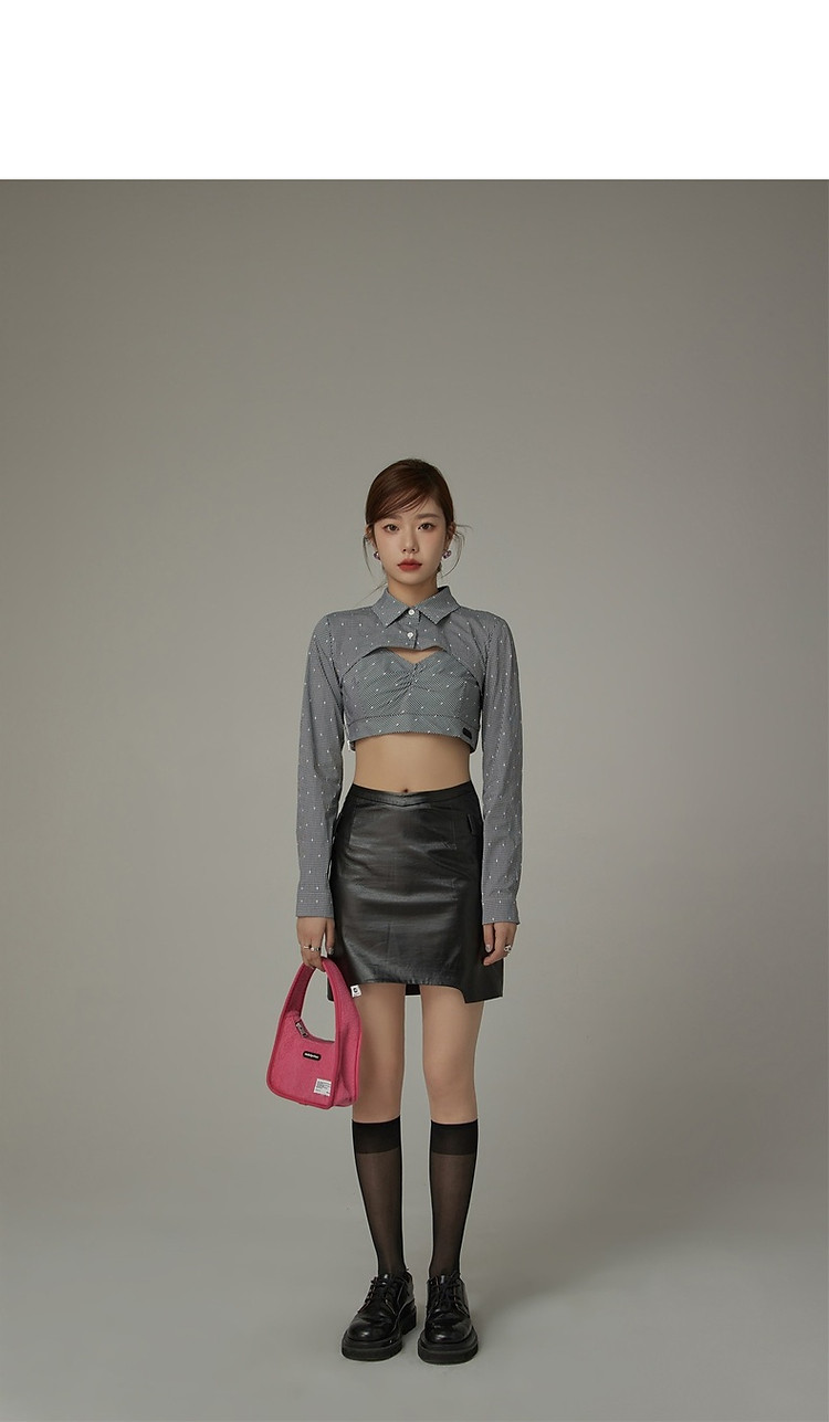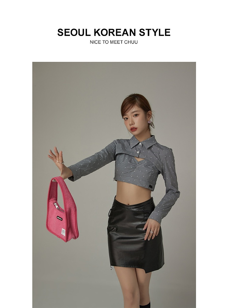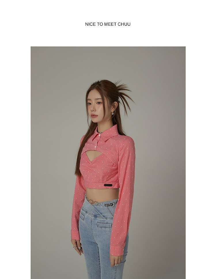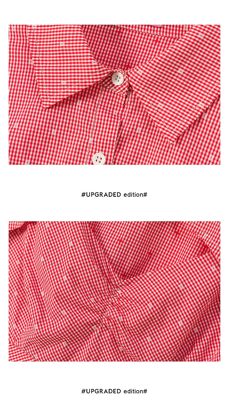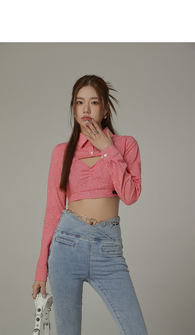 商品名称:辣妹镂空衬衫女夏设计感个性显瘦格子长袖短款上衣 423635
