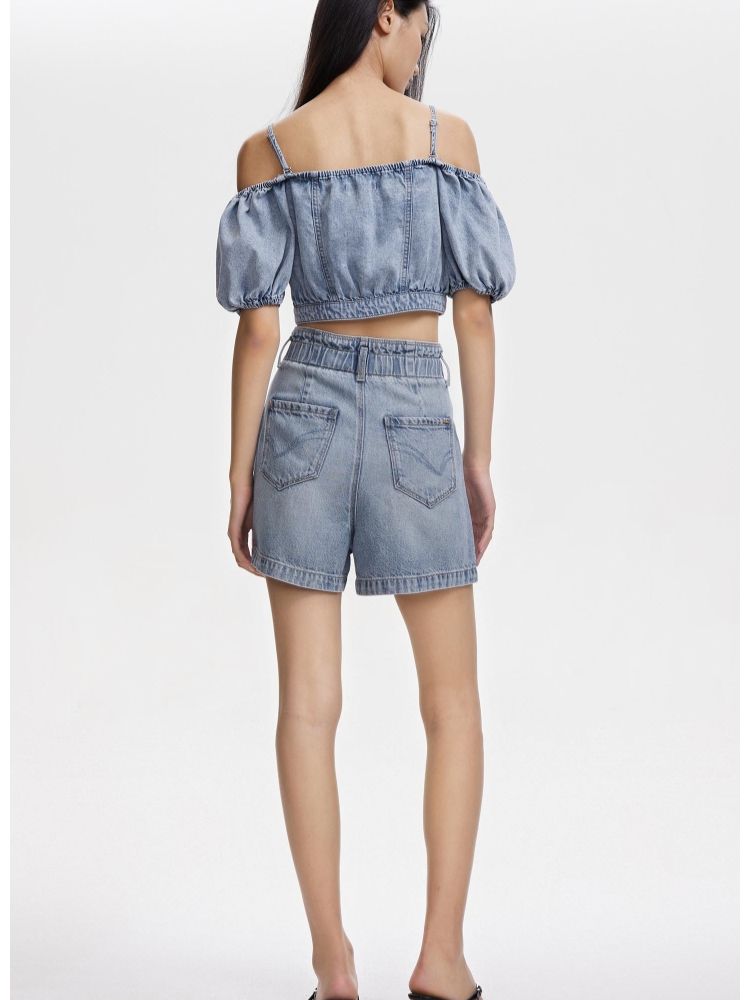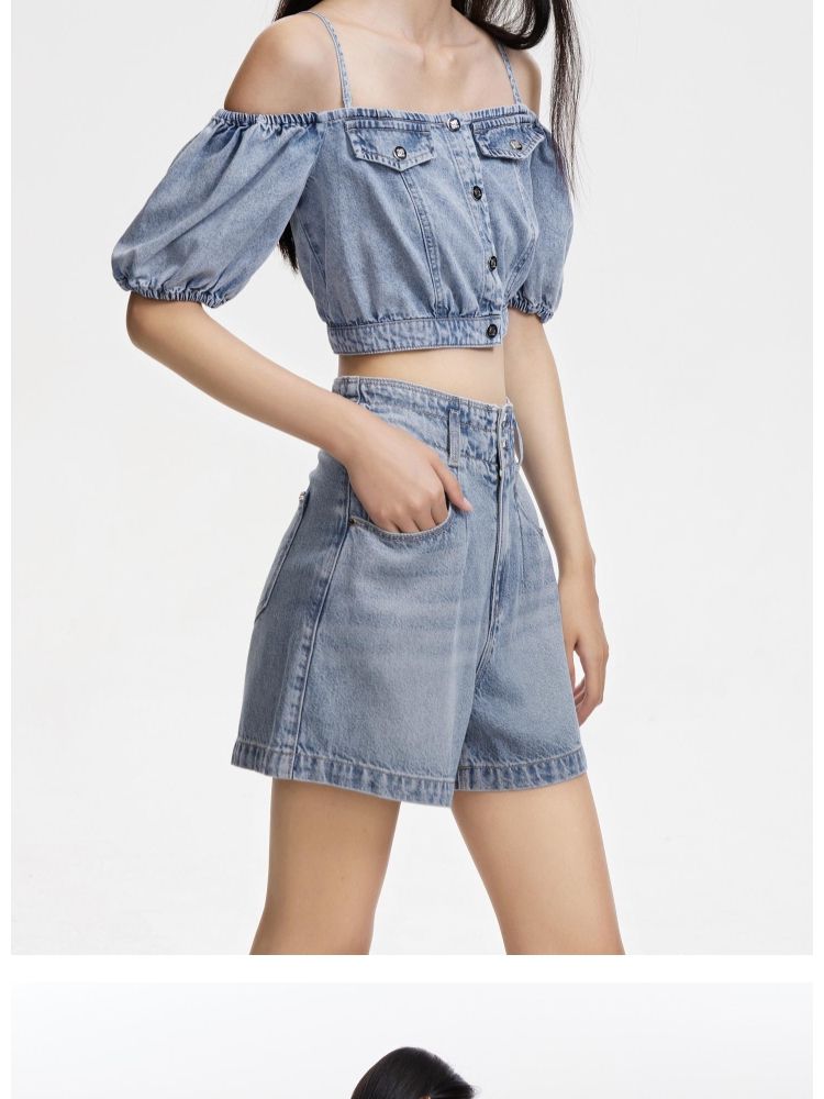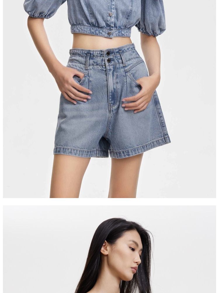 【废土风】春季时尚休闲废土风高腰A字牛仔短裤女 068762