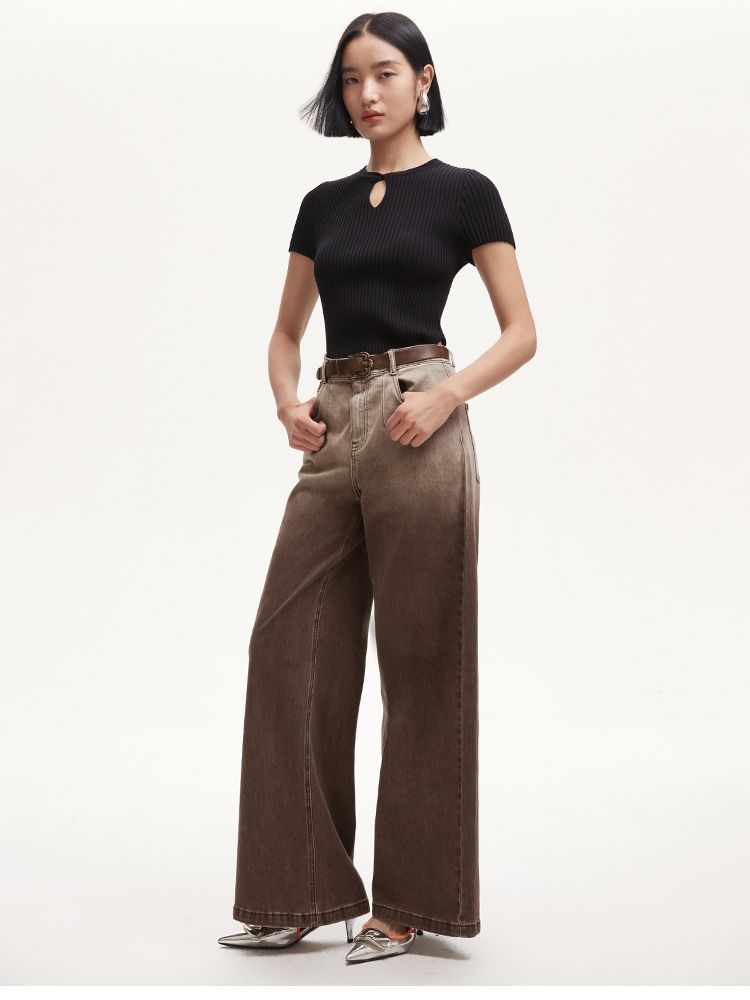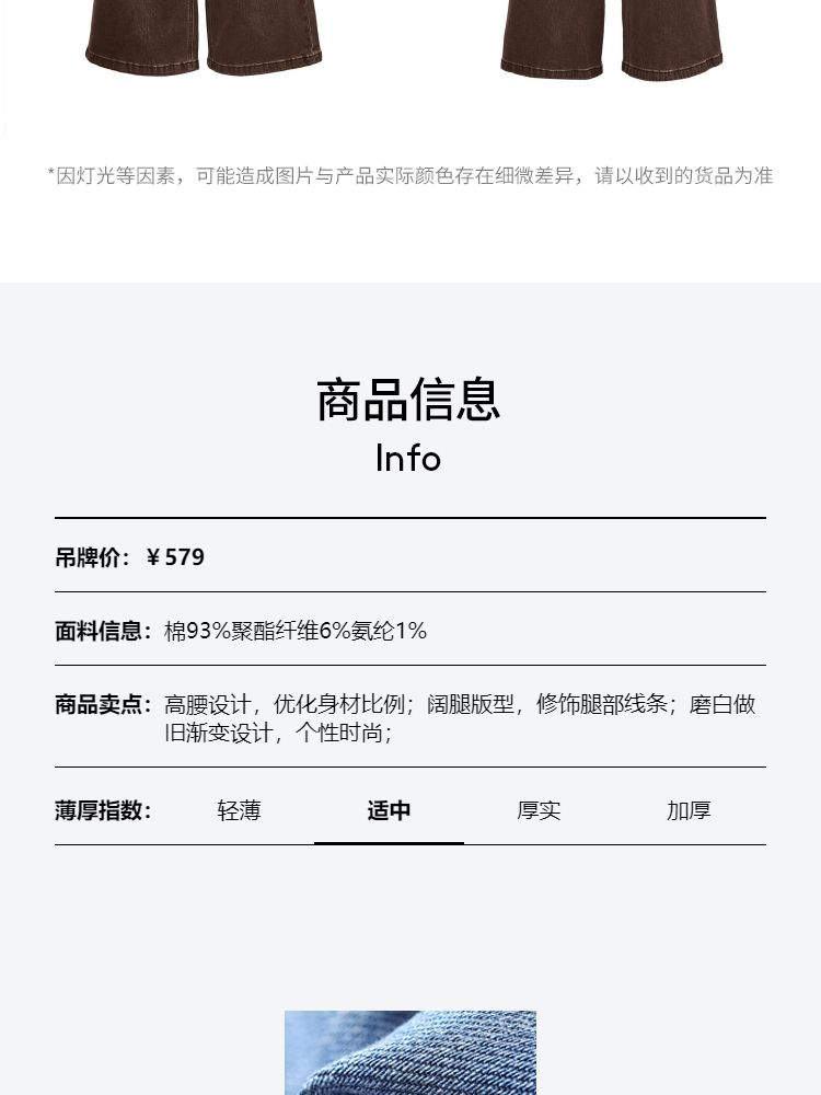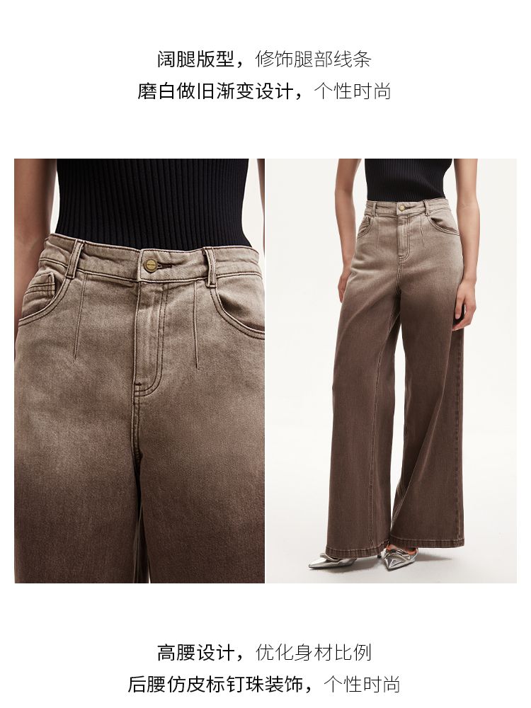 商品名称:牛仔裤女废土风渐变水洗牛仔阔腿裤LOOSE版 158097