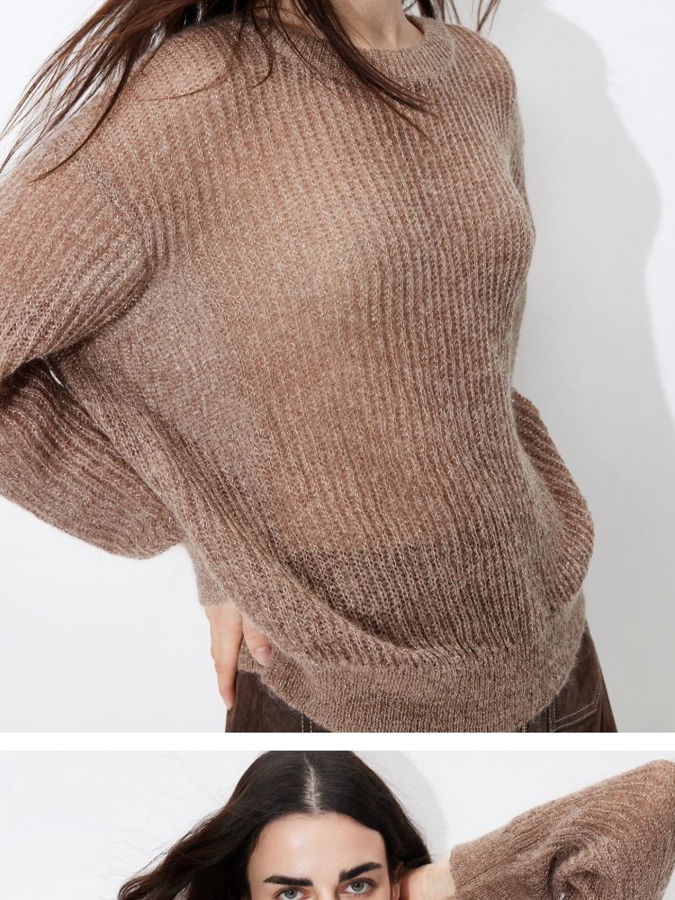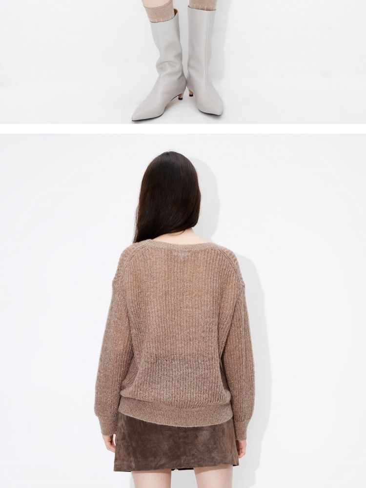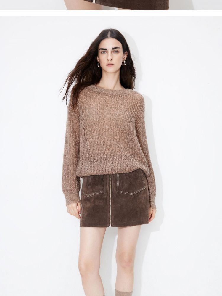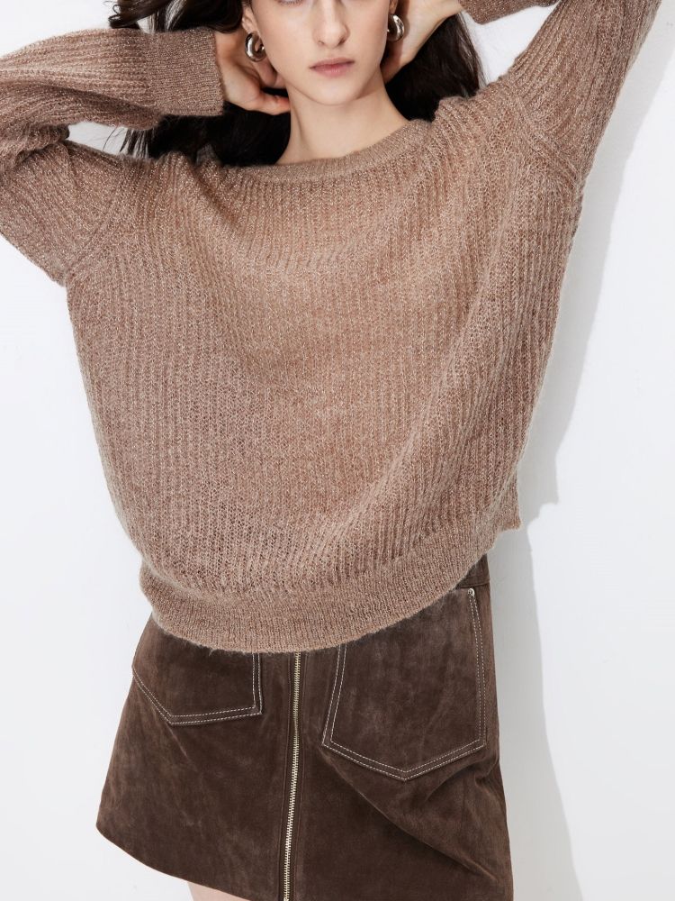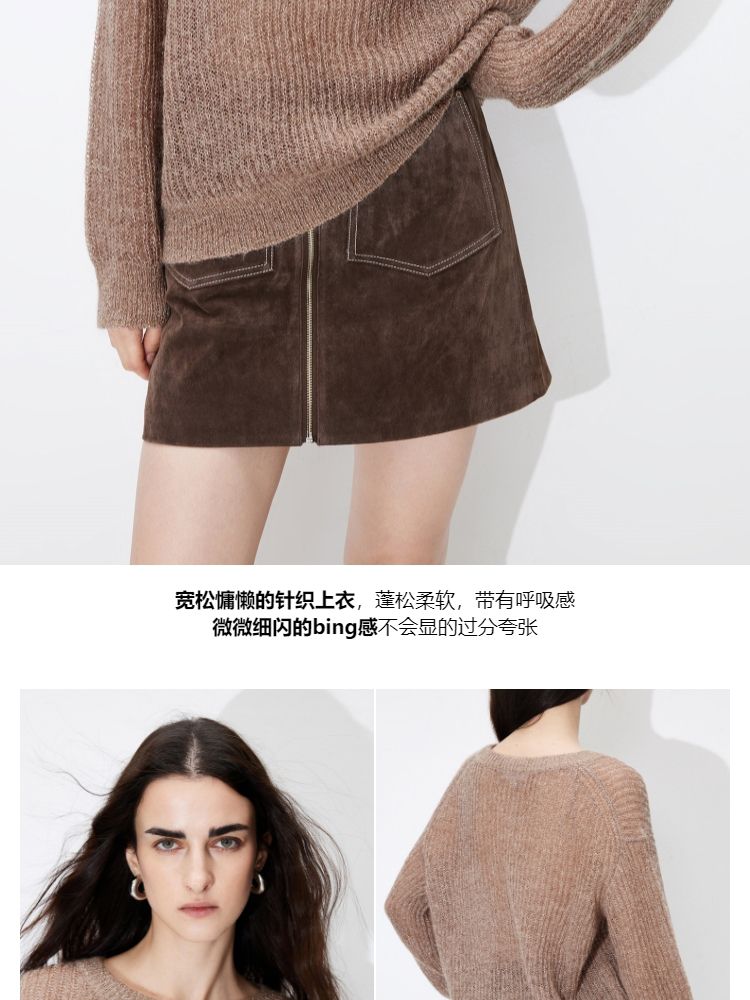 【落肩】春季简约舒适宽松圆领长袖针织衫女 821594