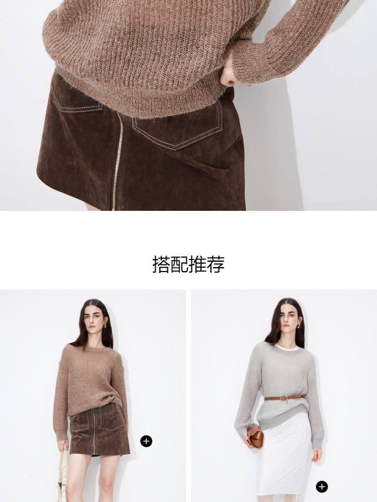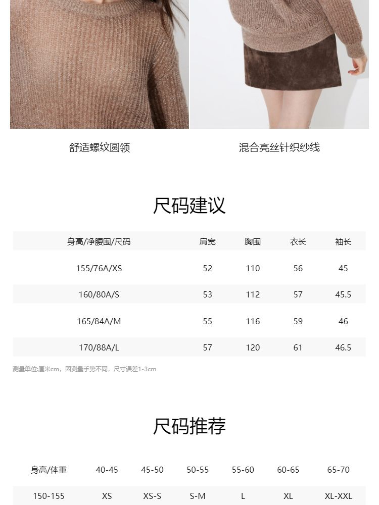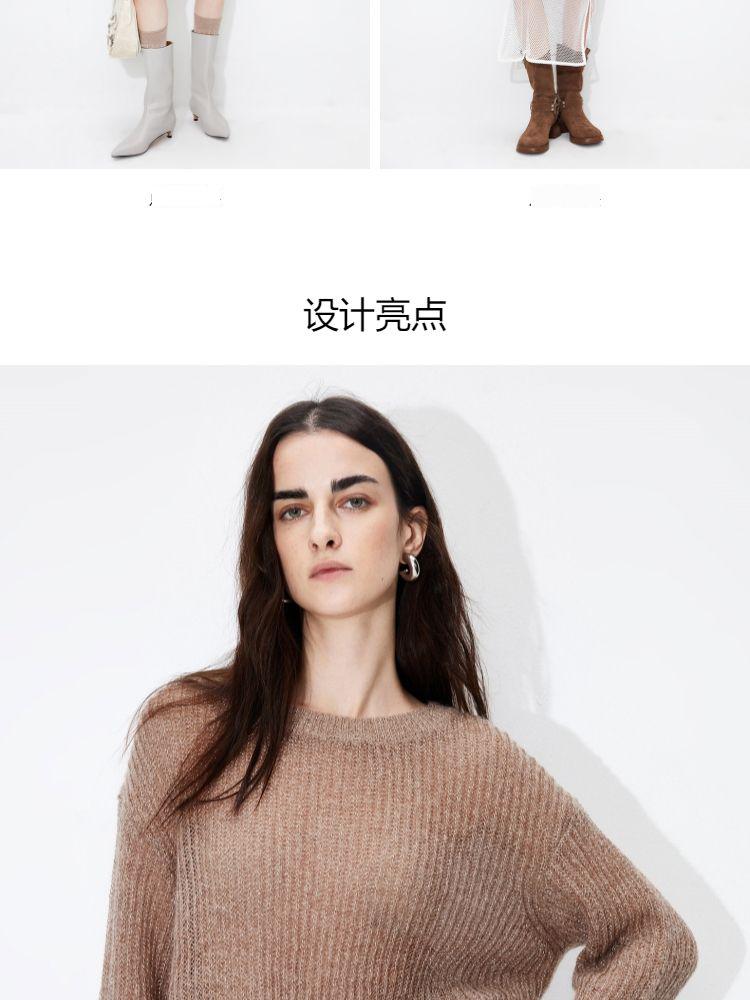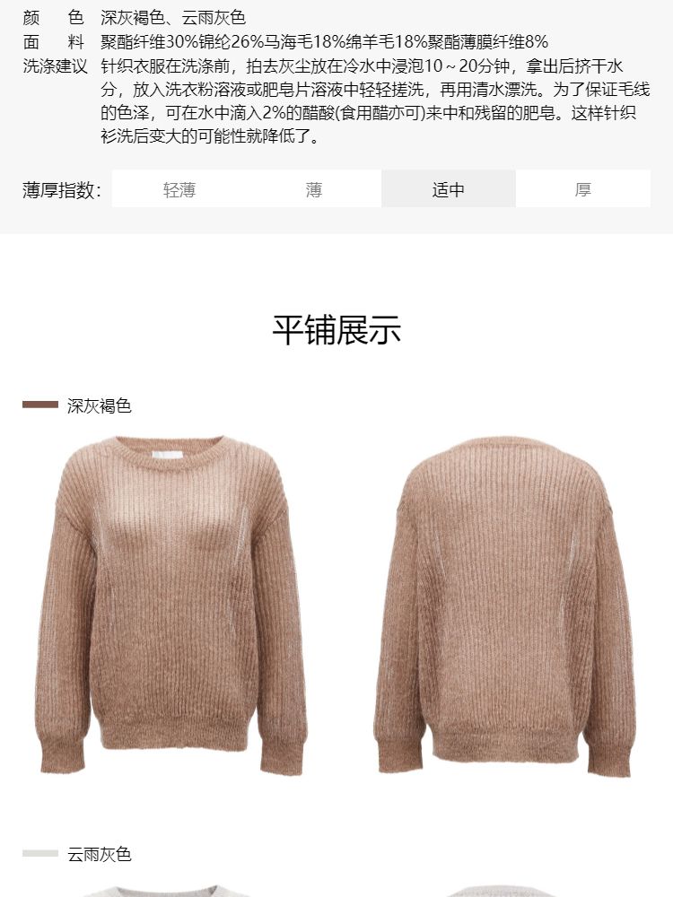 商品名称:【落肩】春季简约舒适宽松圆领长袖针织衫女 821594