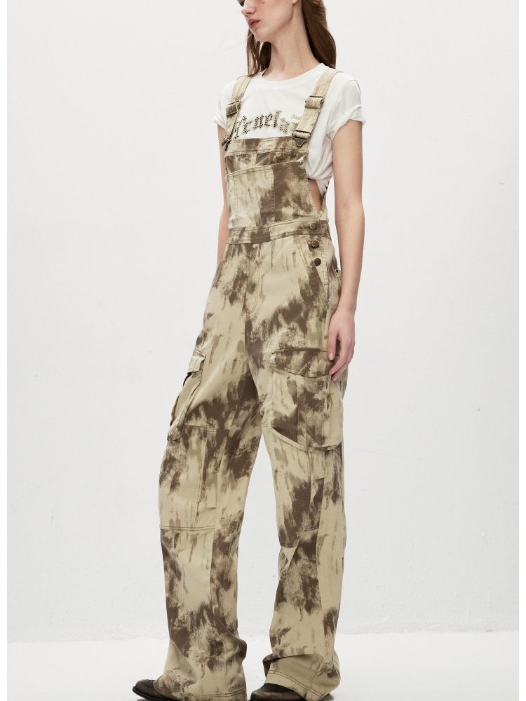 【废土风】夏季时尚直筒高腰长裤背带休闲裤女 072986