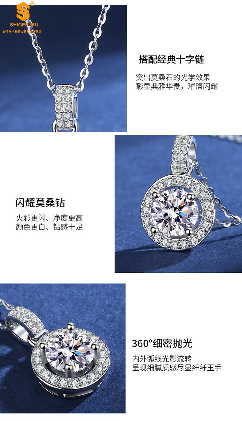 商品名称:香港周六福 比利时莫桑钻吊坠豪镶圆饼