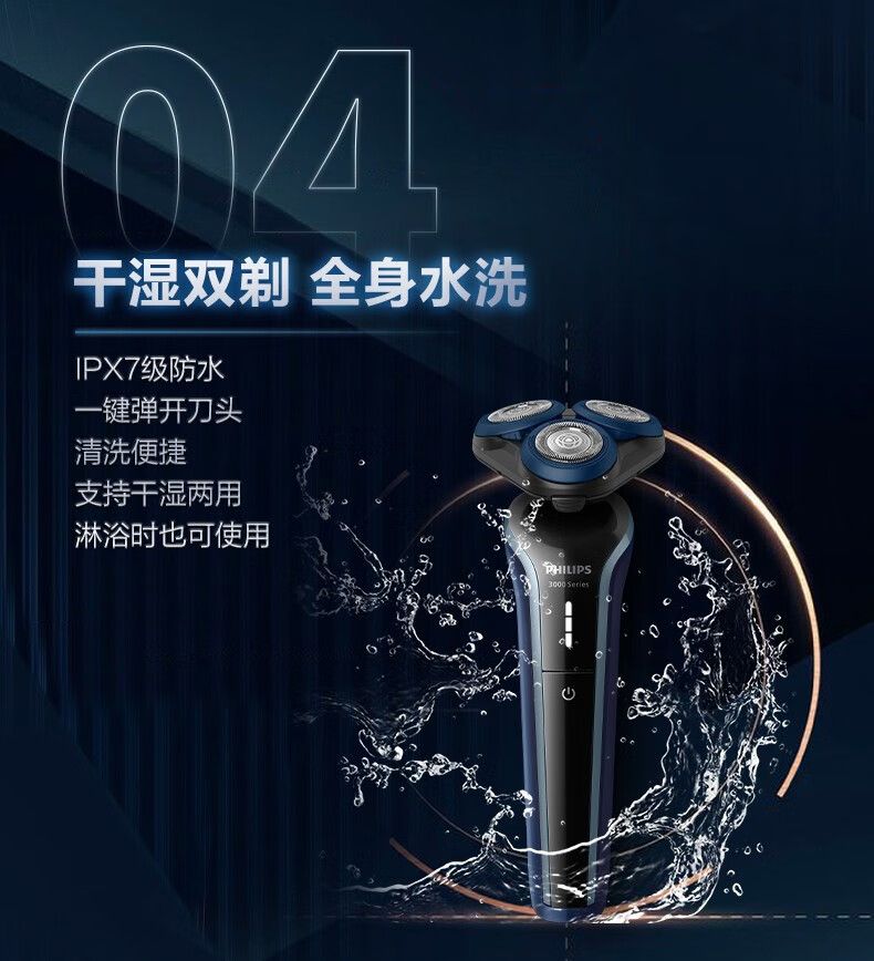 商品名称:飞利浦(PHILIPS)电动剃须刀S3608/10 风驰切剃恒稳智控马达 自动调节干湿双剃刮胡刀