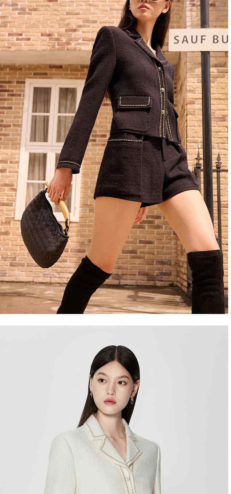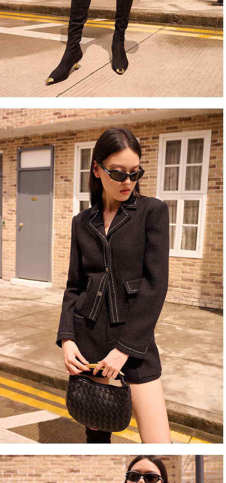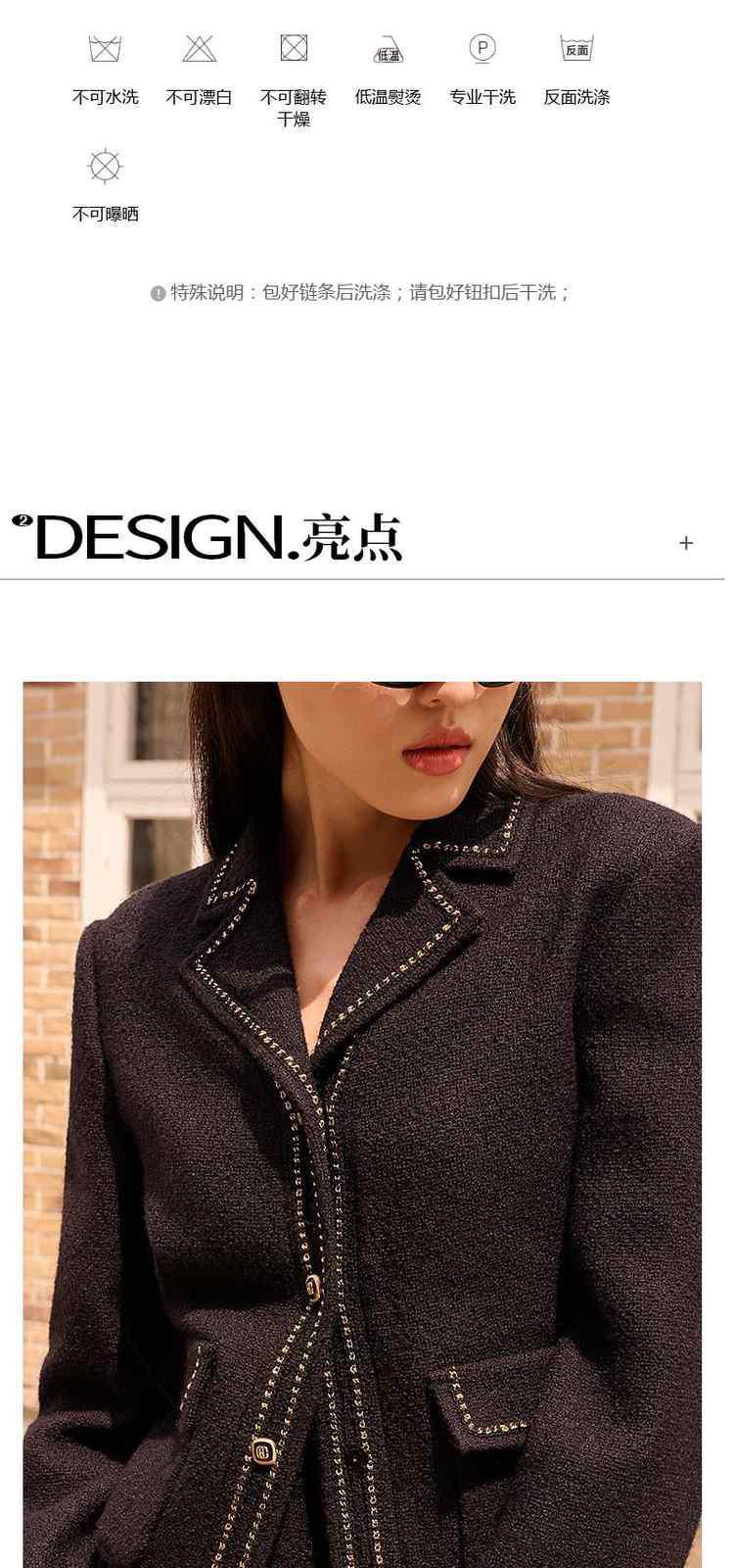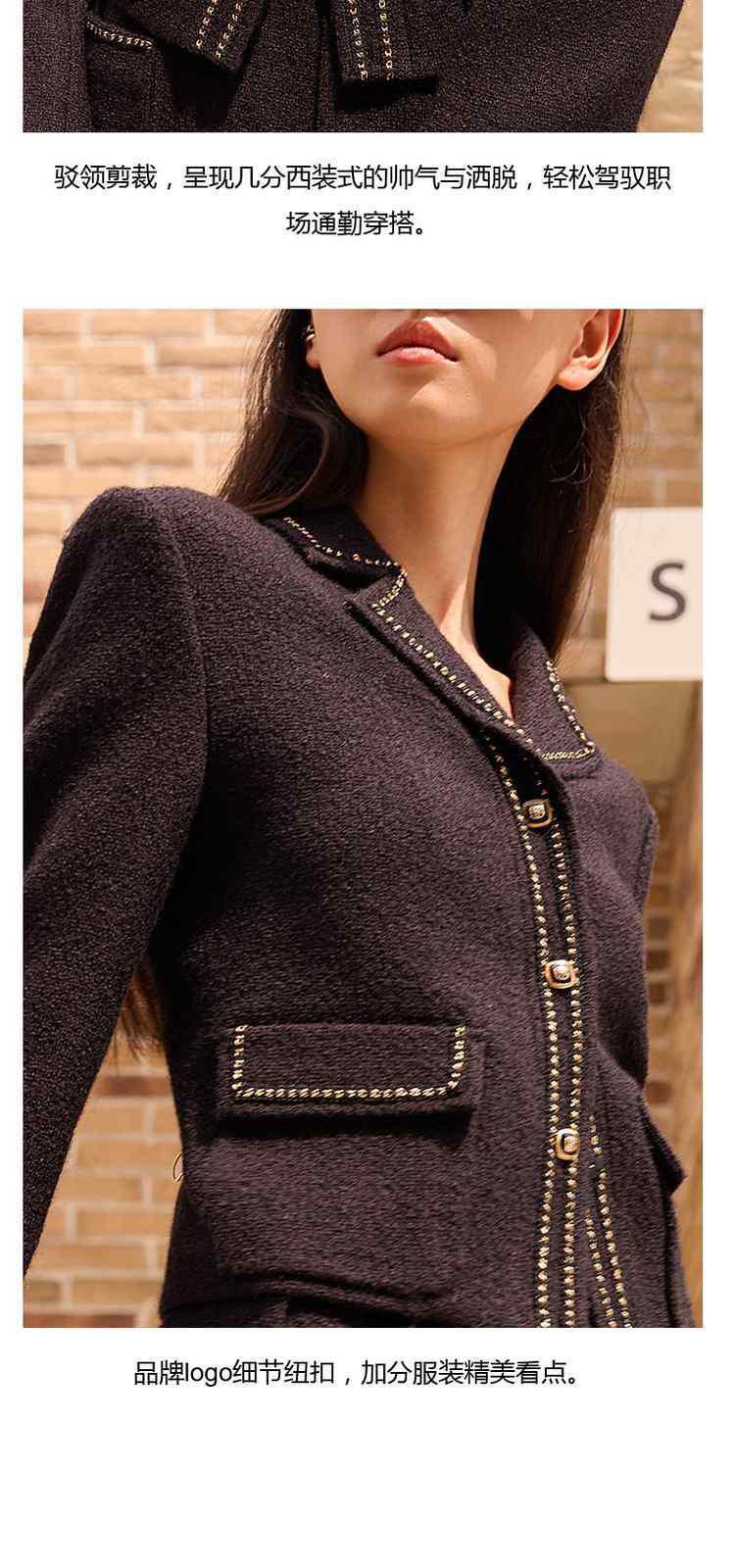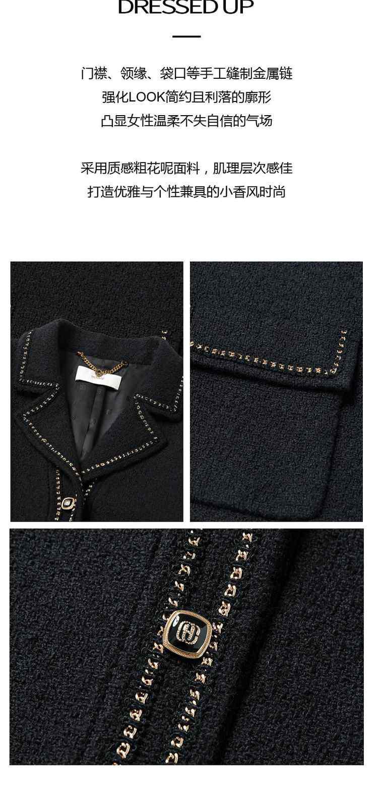 商品名称:春装 金属链镶边翻领粗花呢小香风外套女 810255