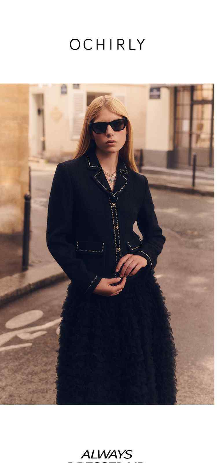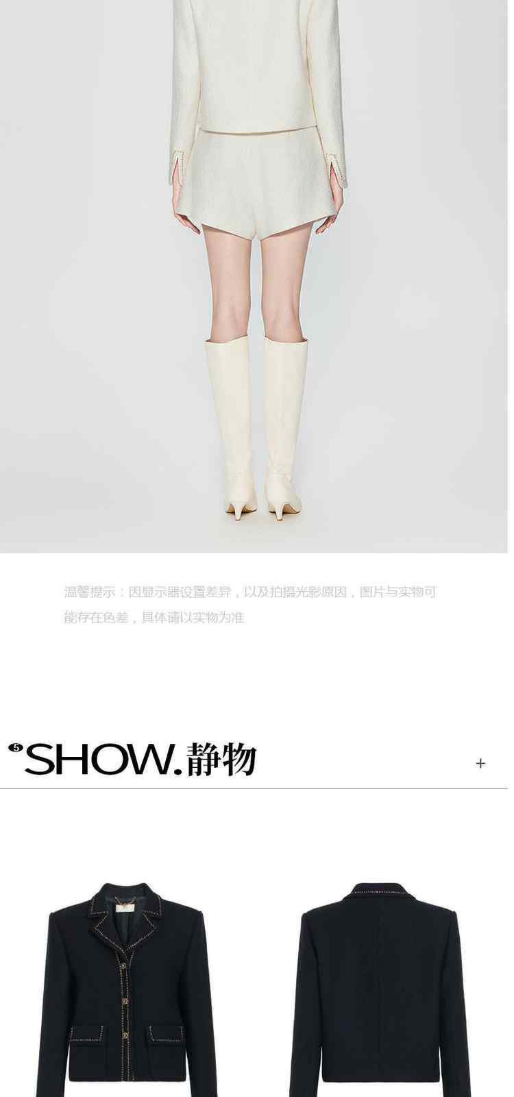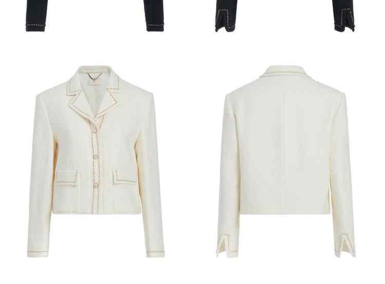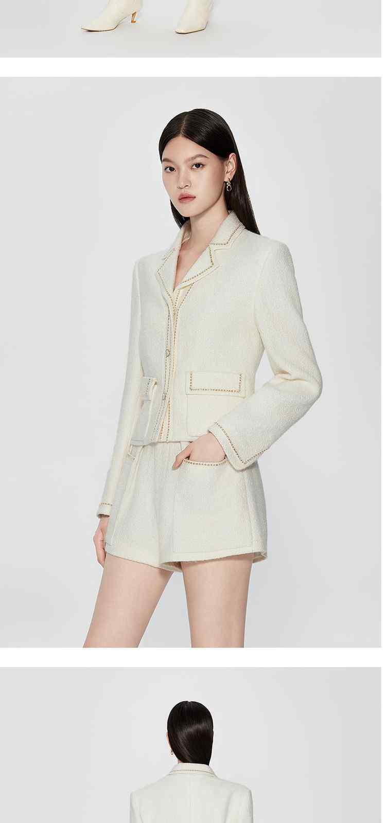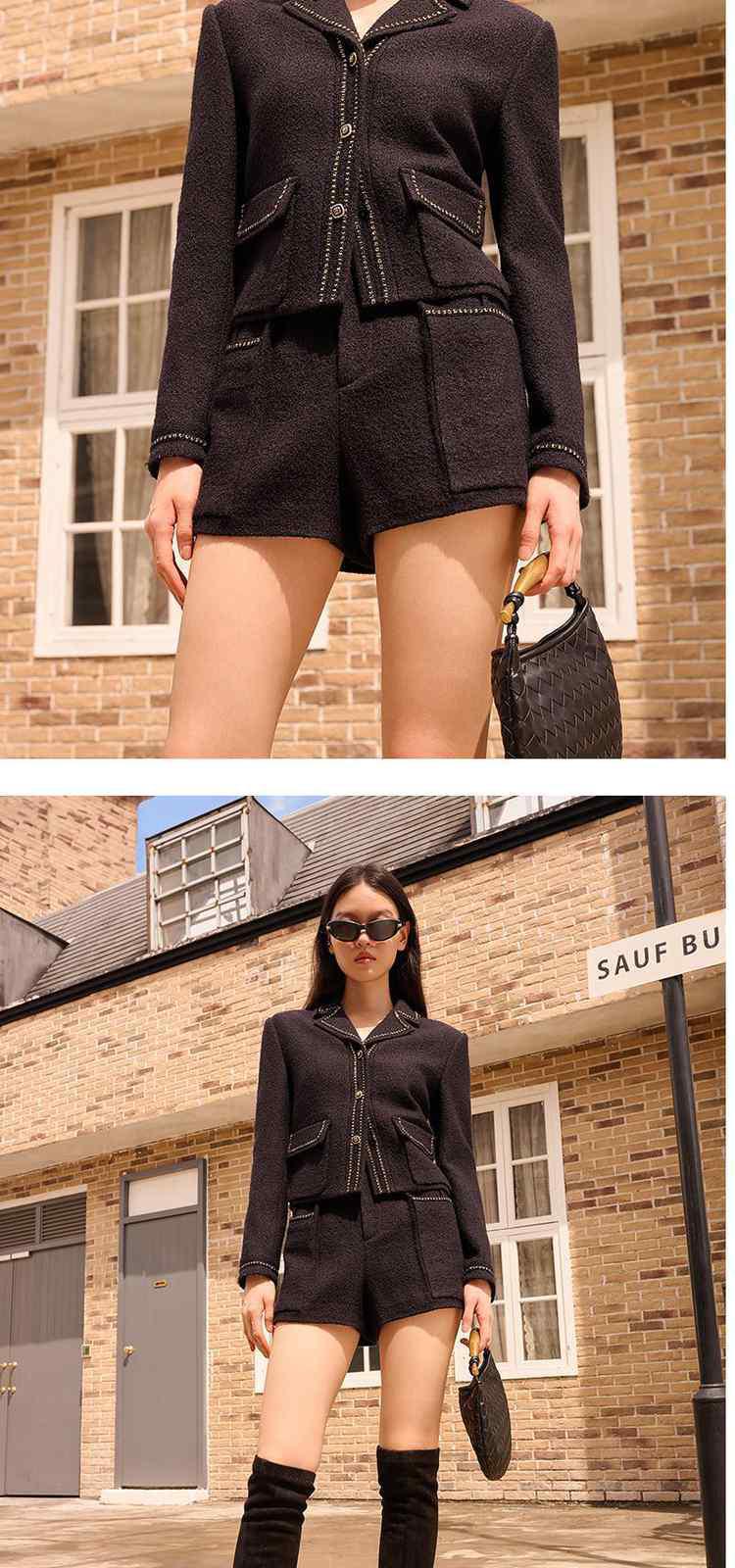 商品名称:春装 金属链镶边翻领粗花呢小香风外套女 810255