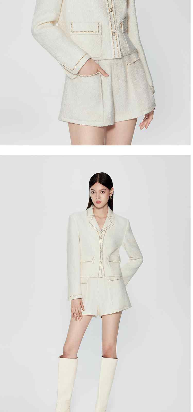 春装 金属链镶边翻领粗花呢小香风外套女 810255