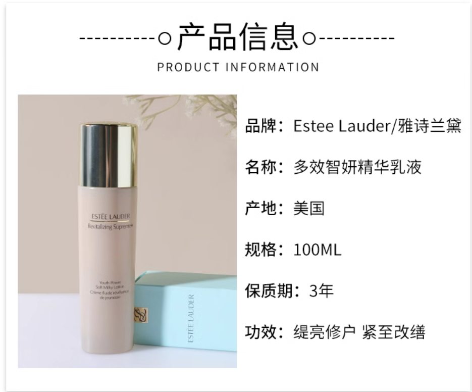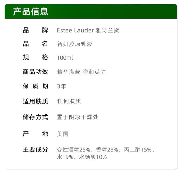 商品名称:Estee Lauder/雅诗兰黛 第二代智妍胶原乳 100ml 清爽滋润补水保湿