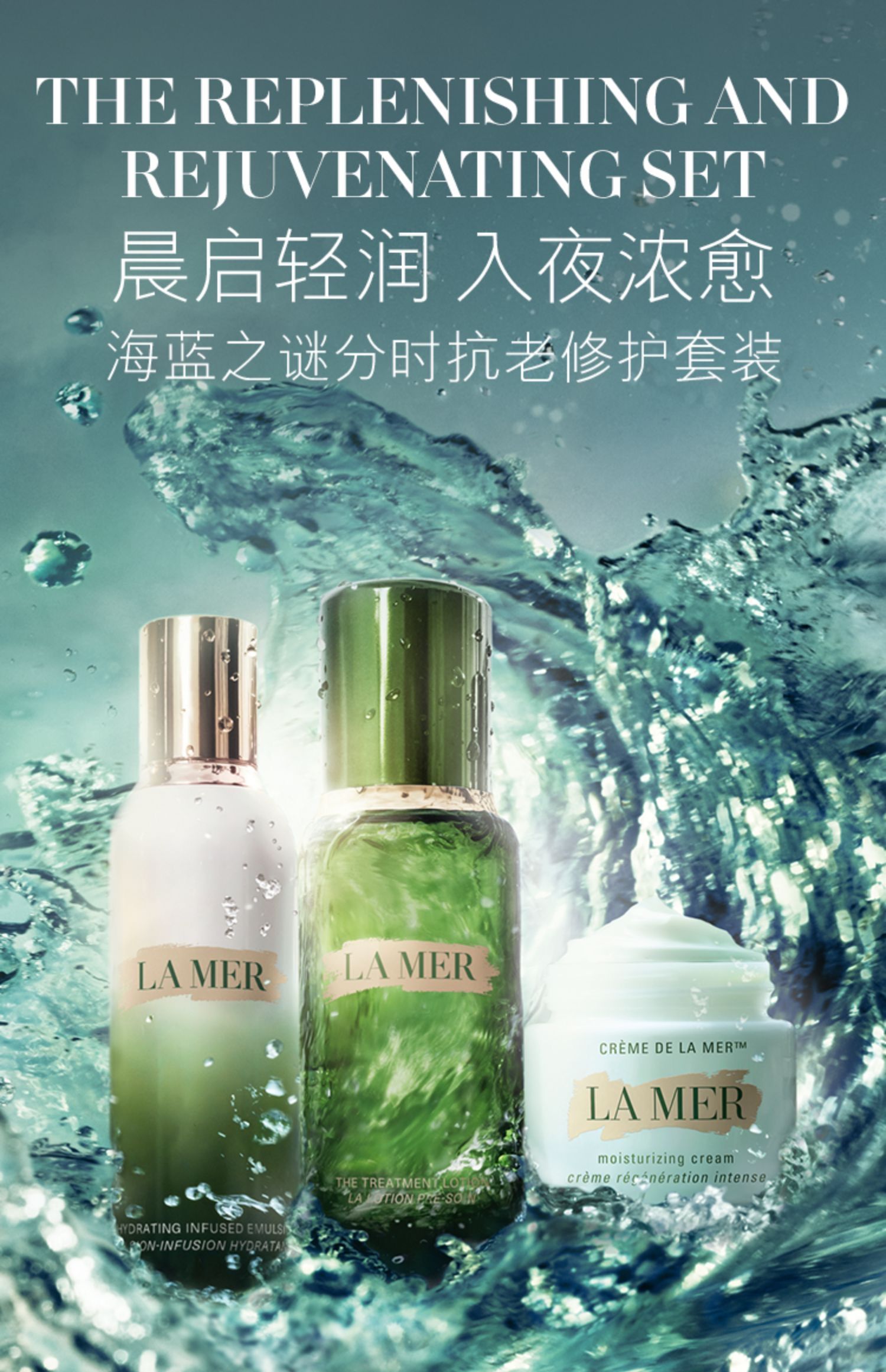商品名称:La Mer/海蓝之谜 水润抵达四件套 精萃水150ml+精萃乳125ml+经典面霜60ml+修护唇膏9g