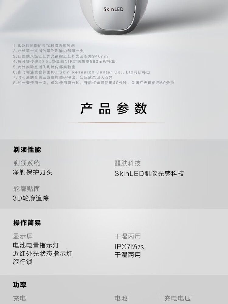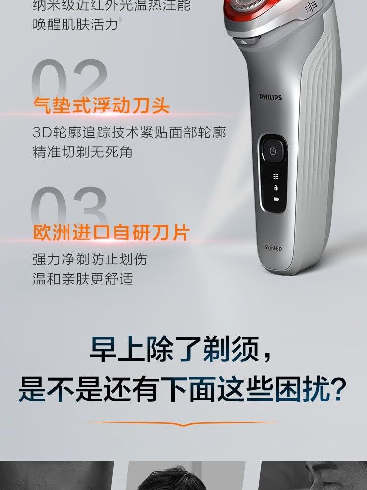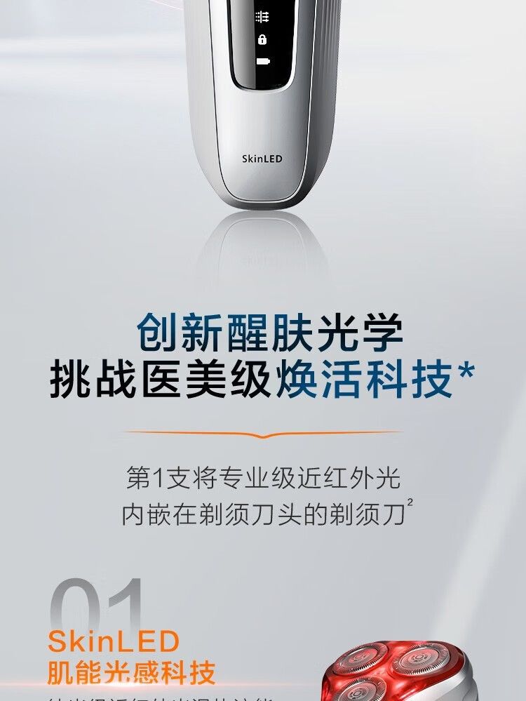 商品名称:飞利浦剃须刀LED4500/01 电动刮胡刀 红光肌能光感科技男士胡须刀