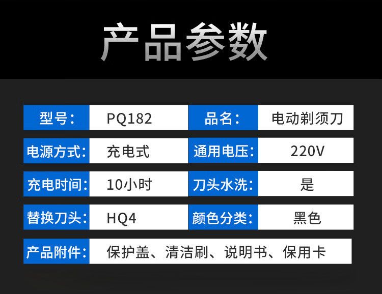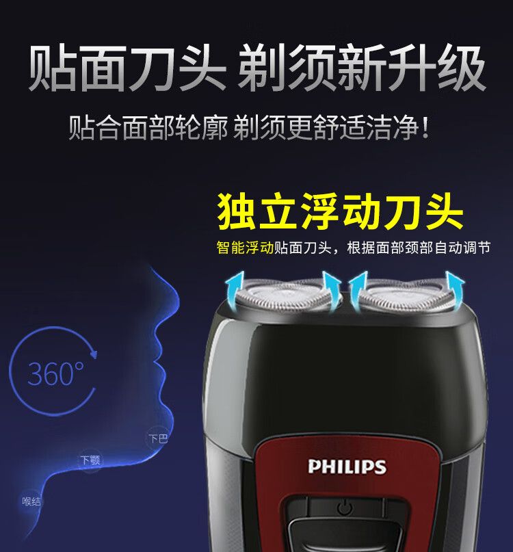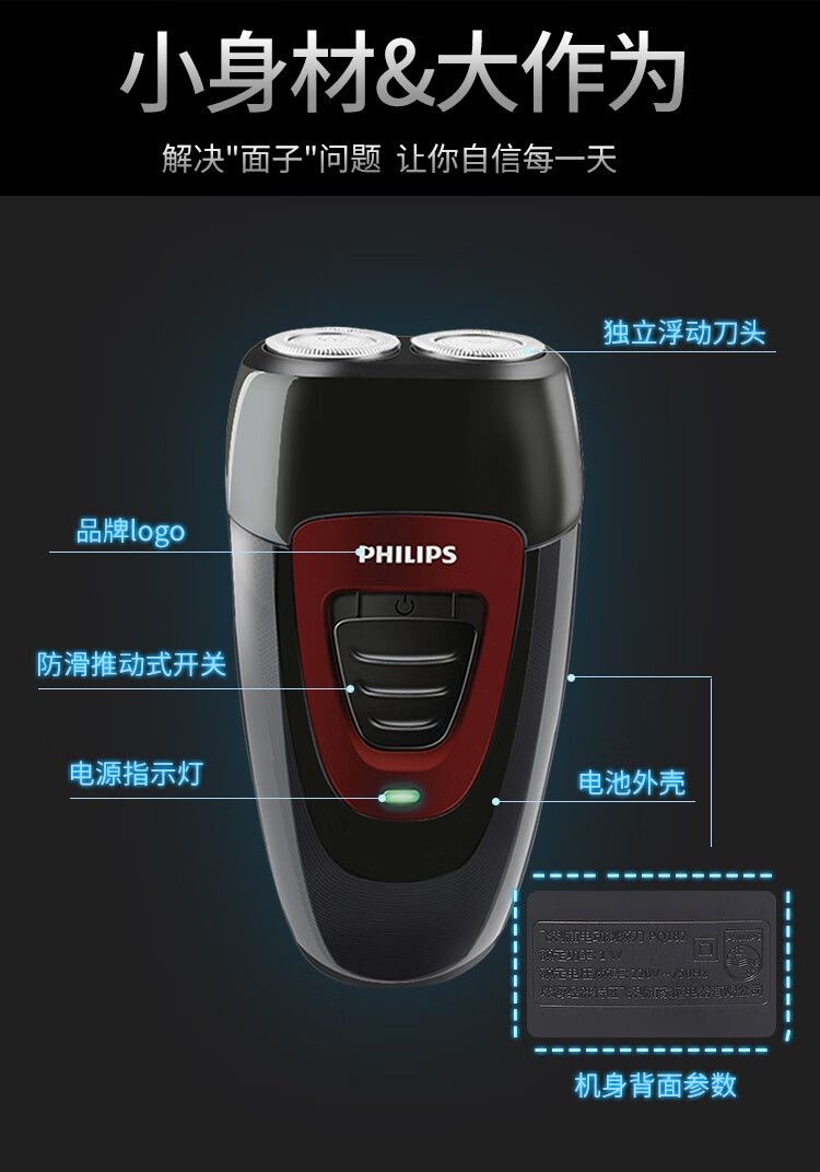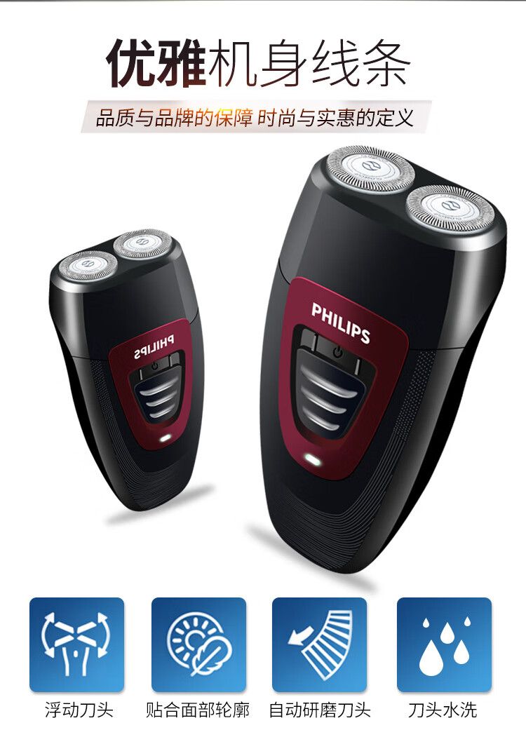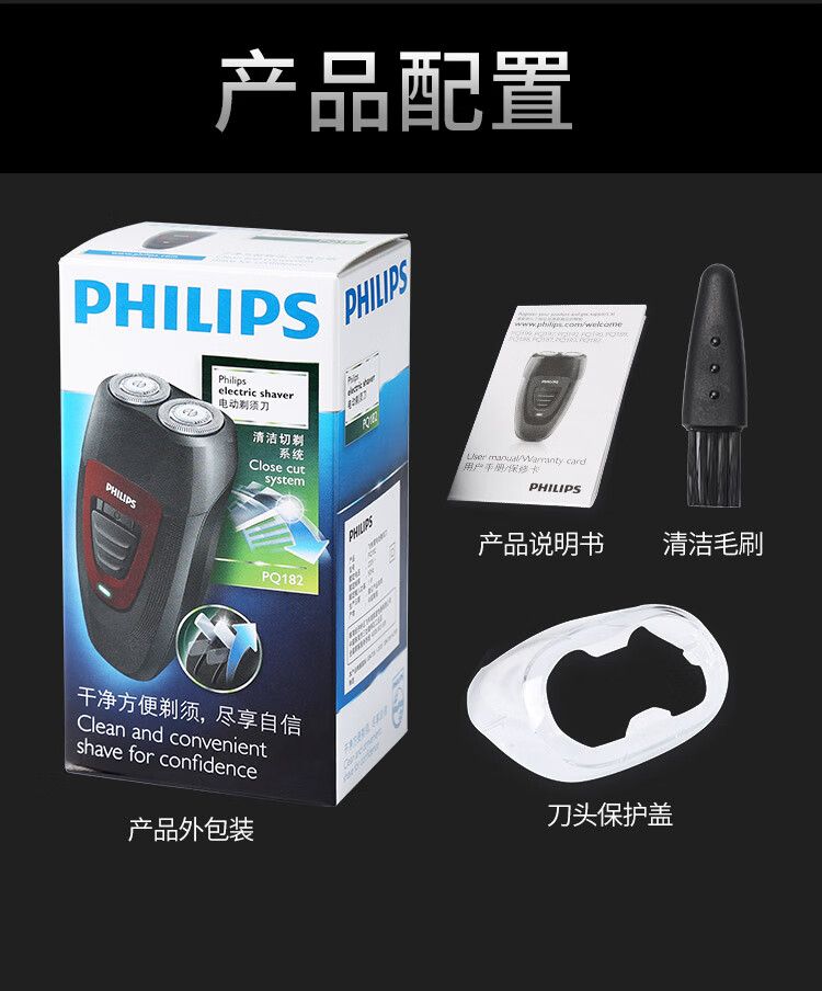 商品名称:飞利浦电动剃须刀PQ182 充电式刮胡刀双刀头刮须刀旋转式胡须刀弹性进口刀头红色