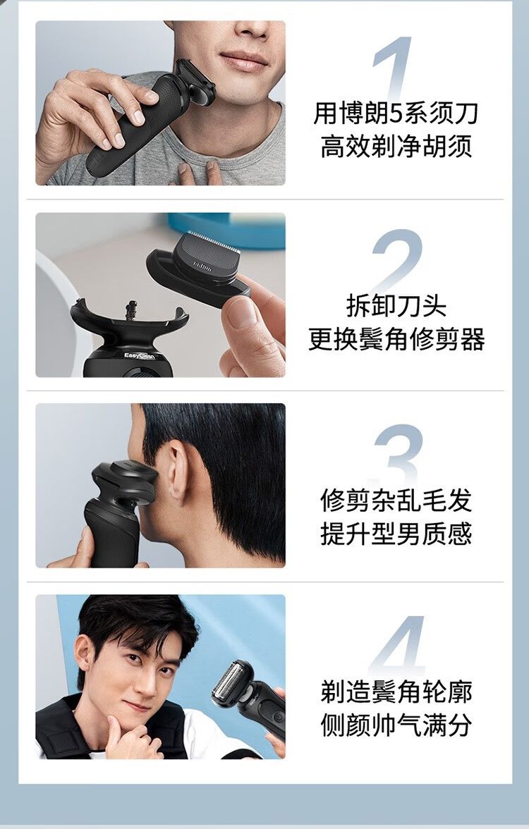 商品名称:博朗5系pro进口1200s电动剃须刀黑色 全身水洗刮胡刀免拆冲洗鬓角修剪器