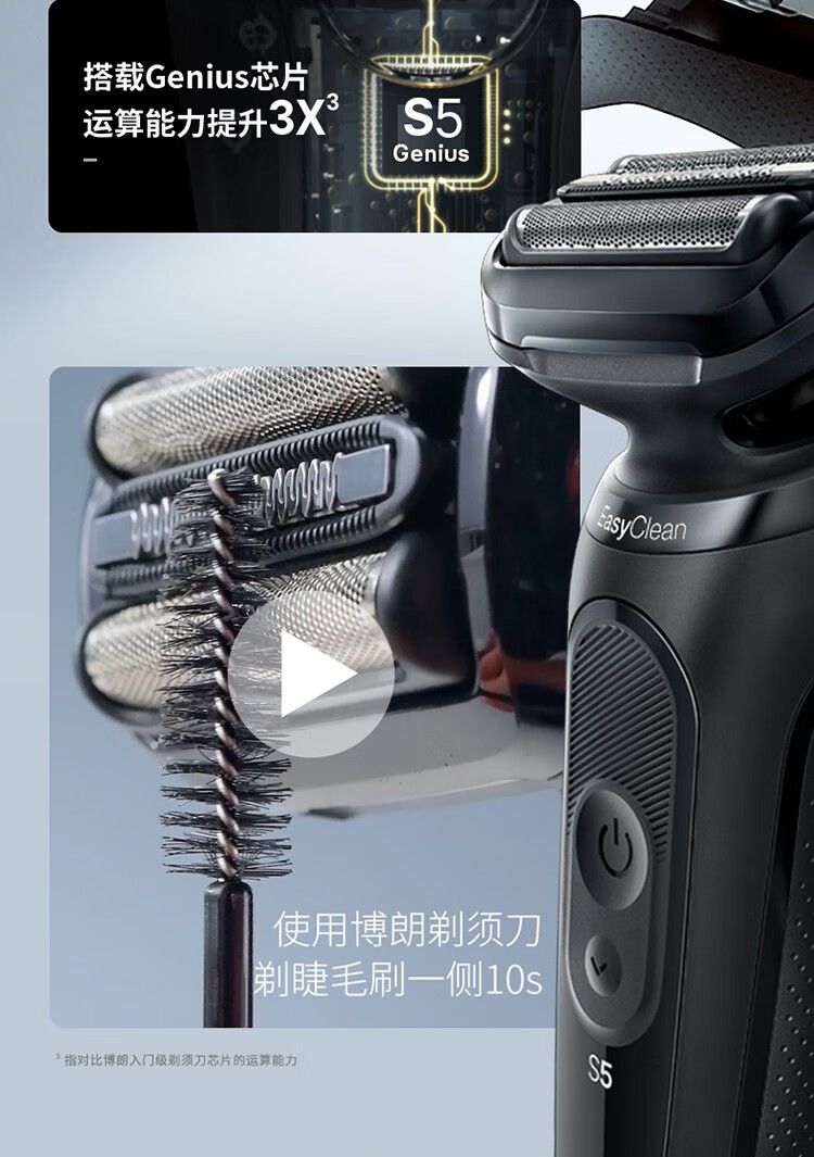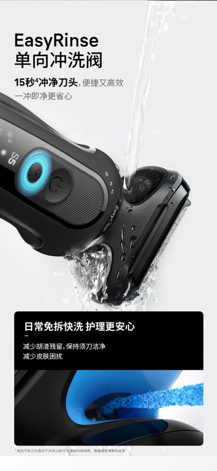 博朗5系pro进口1200s电动剃须刀黑色 全身水洗刮胡刀免拆冲洗鬓角修剪器