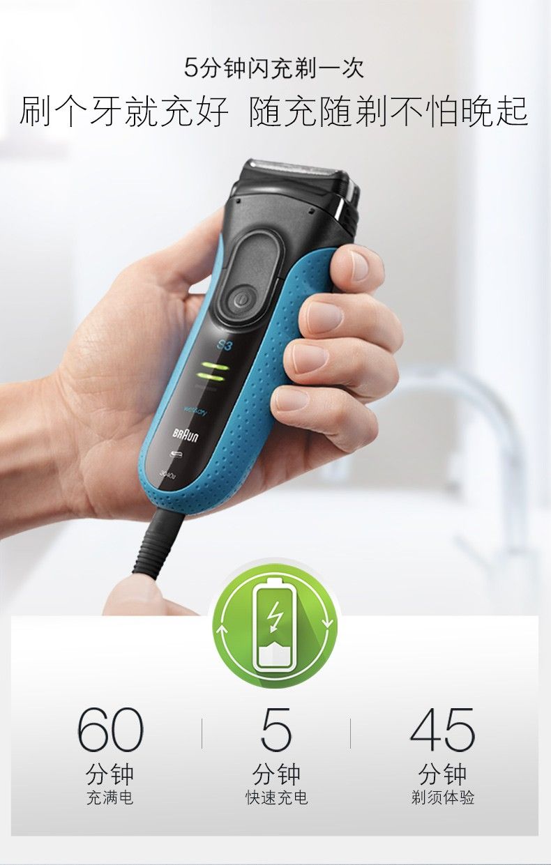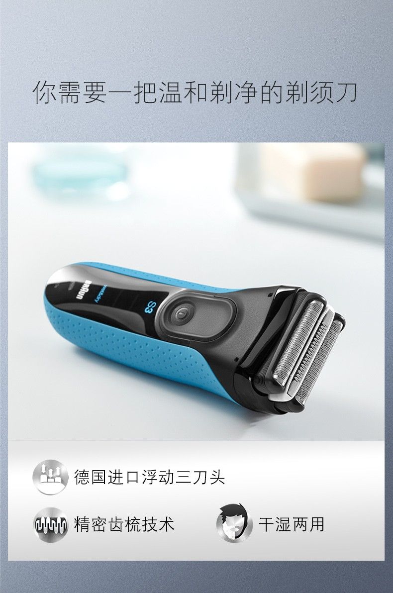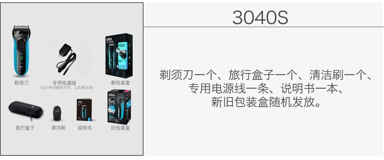 商品名称:博朗(BRAUN) 男士电动剃须刀新3系3040s 三刀头充电往复式干湿双剃 电动刮胡刀