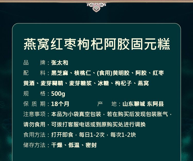 商品名称:张太和 燕窝阿胶固元膏礼盒 500g