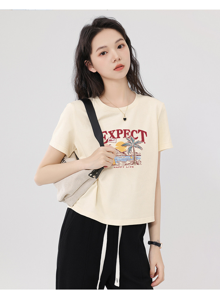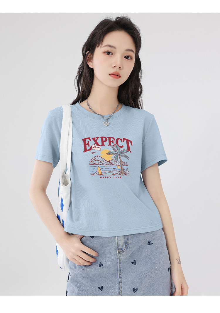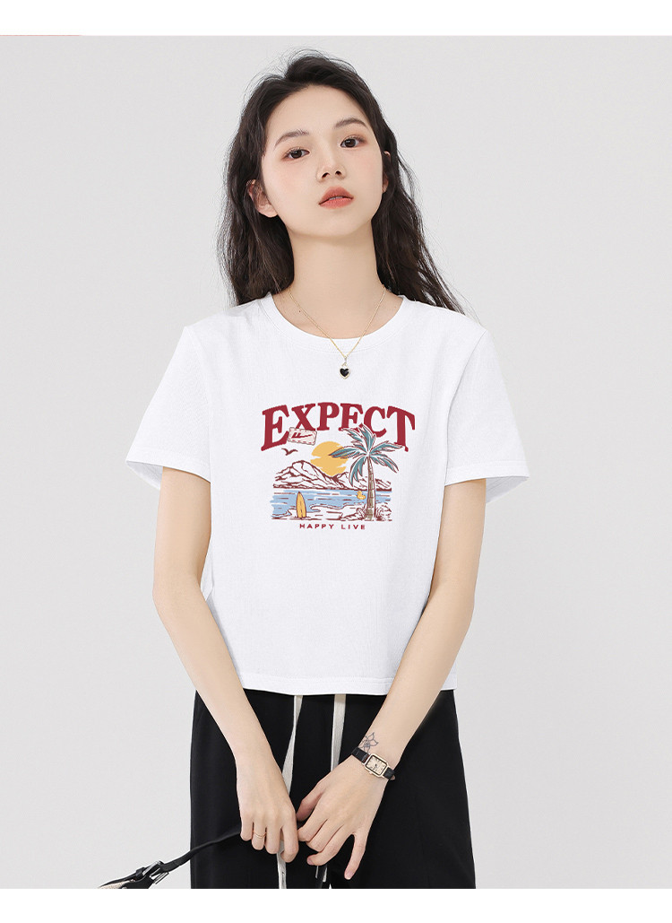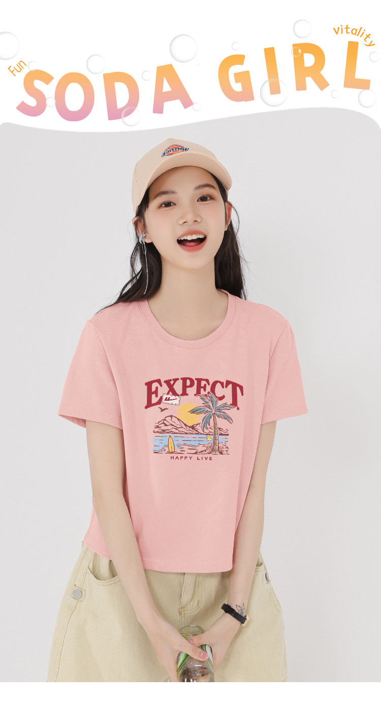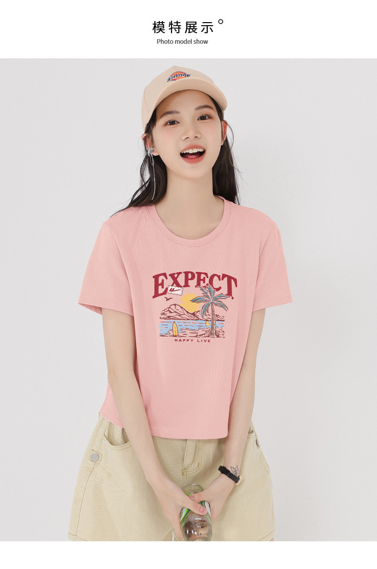 【女装100%棉】夏季新款女式短袖T短款显瘦设计感甜辣风上衣 450771