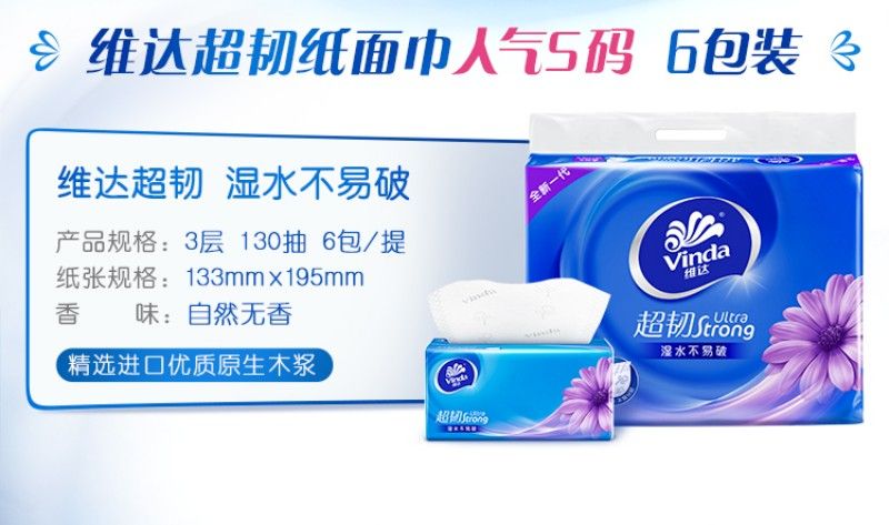 商品名称:维达超韧抽纸3层130抽6连包4提24包V2239(提)-4