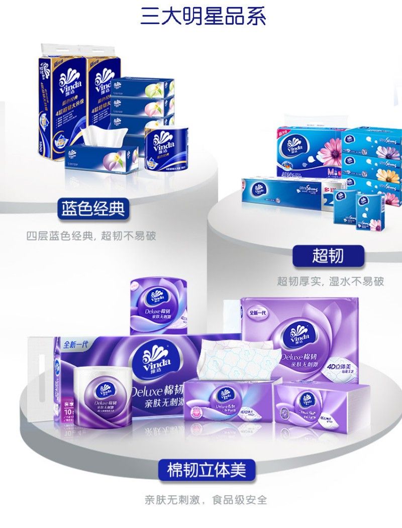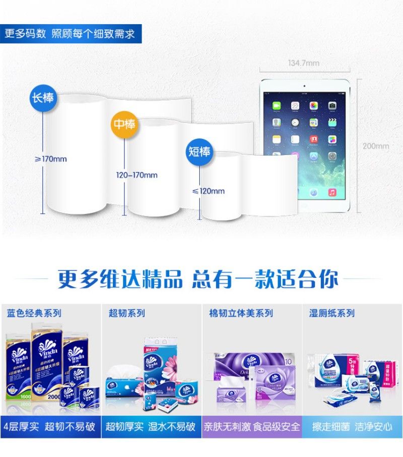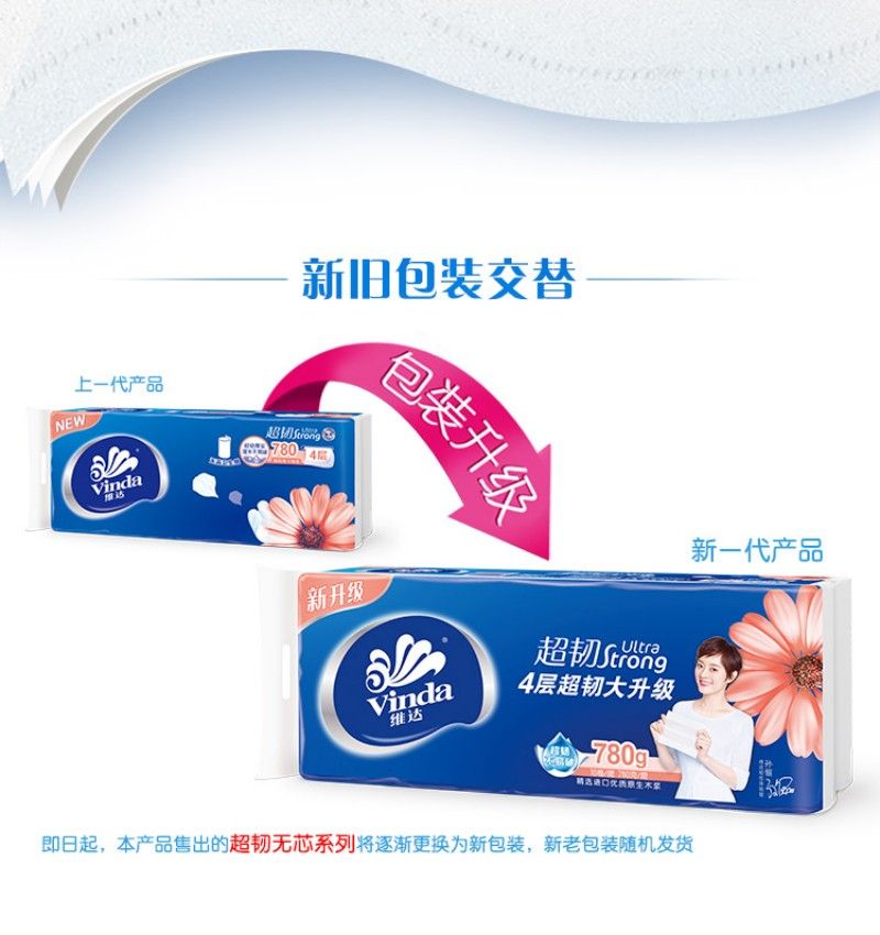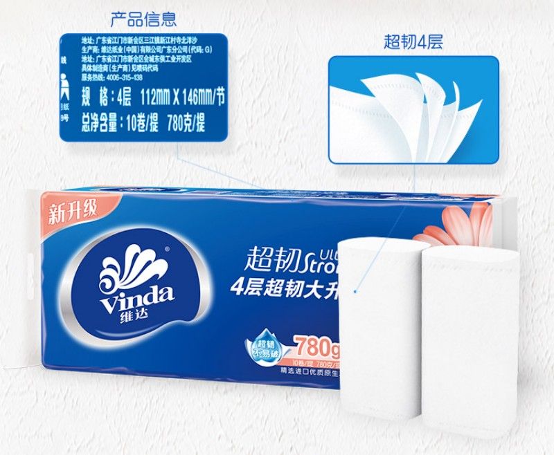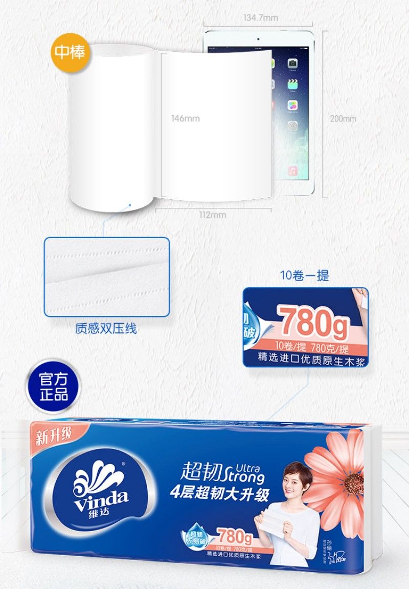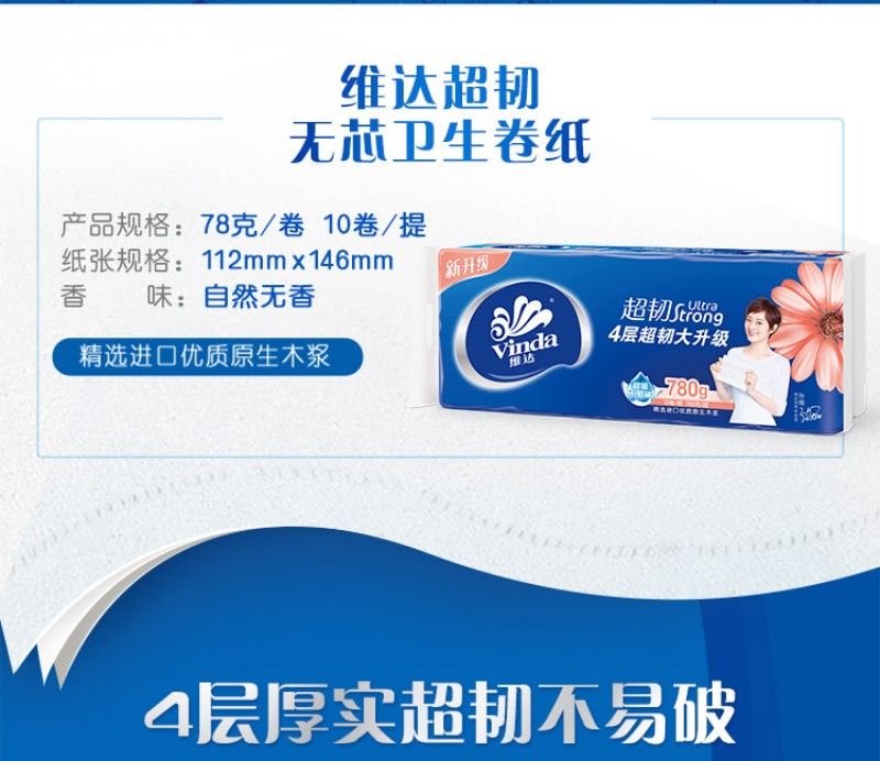 商品名称:维达超韧780g无芯卷纸长卷4层3提30卷v4143-3
