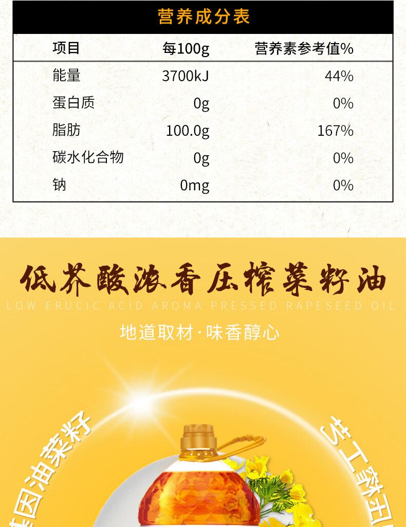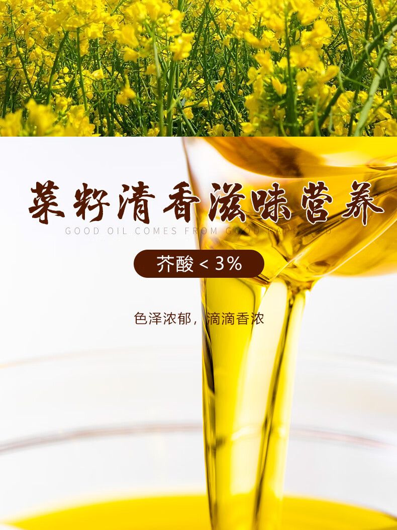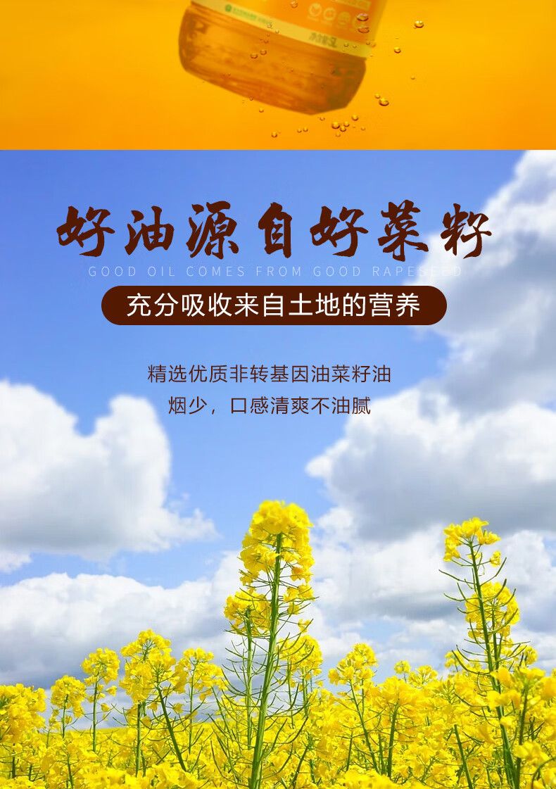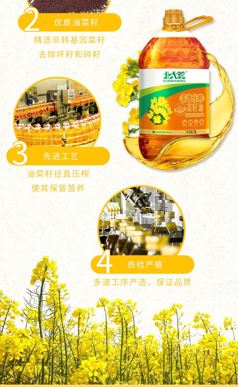 商品名称:北大荒一级 非转基因 低芥酸 压榨莱籽油 家庭装 5L桶装 新日期家用食用油食品送礼