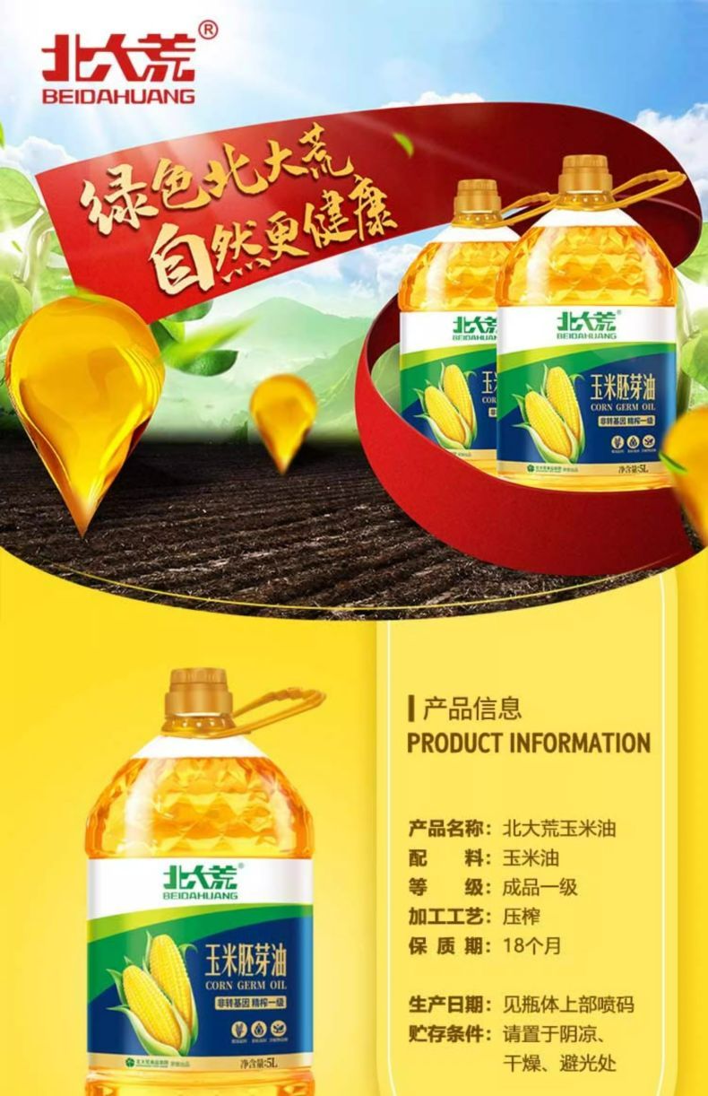 商品名称:北大荒一级 非转基因 玉米胚芽 食用油 家庭装 5L桶装 新日期食品家用食用油 送礼