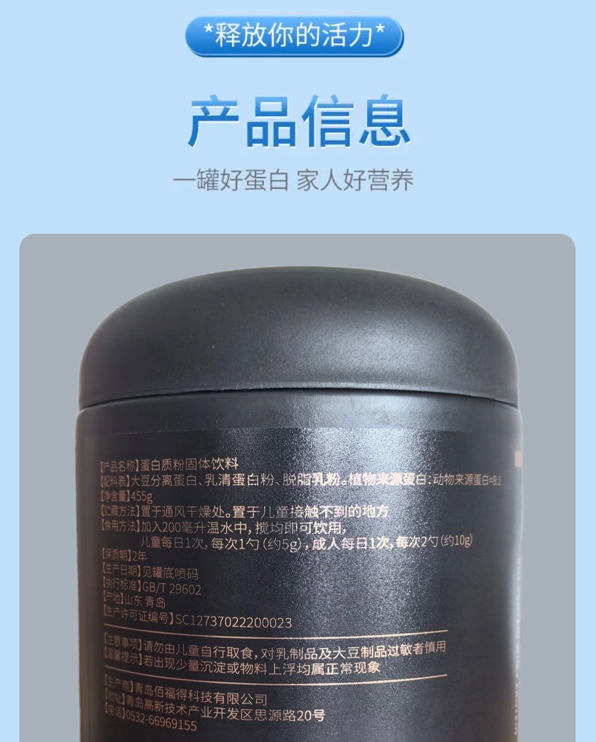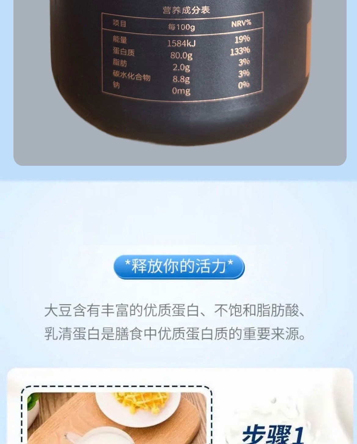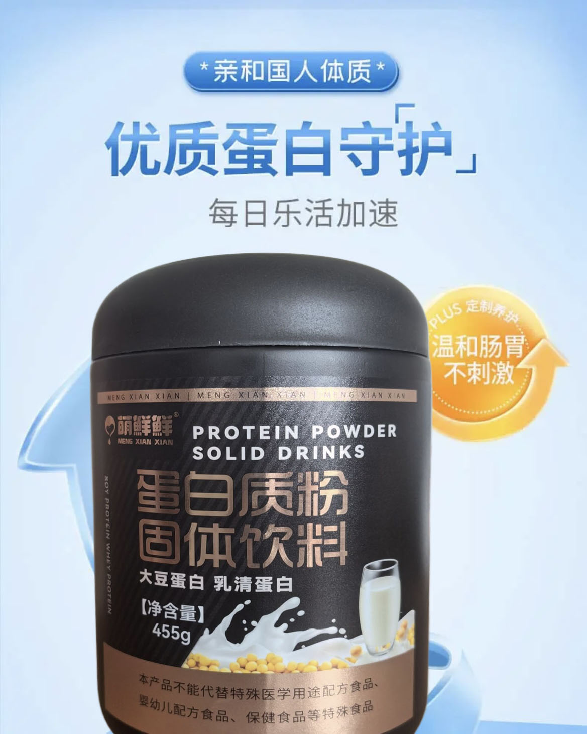 商品名称:萌萌鲜 蛋白质固体饮料大豆蛋白 455g*2桶 蛋白粉