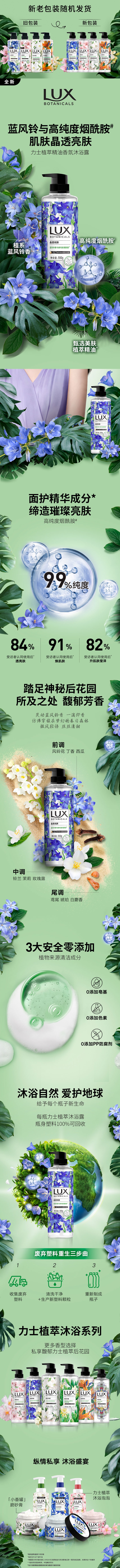 商品名称:力士 植萃精油香氛沐浴露蓝风铃香与烟酰胺550G11203040070