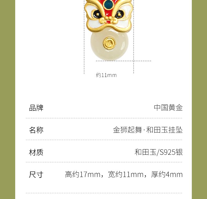 商品名称:中国黄金金狮起舞吊坠TGD004