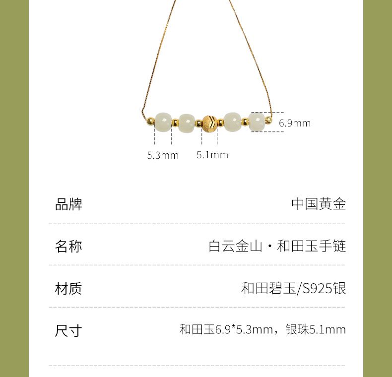 商品名称:中国黄金白玉金山手链TGL003