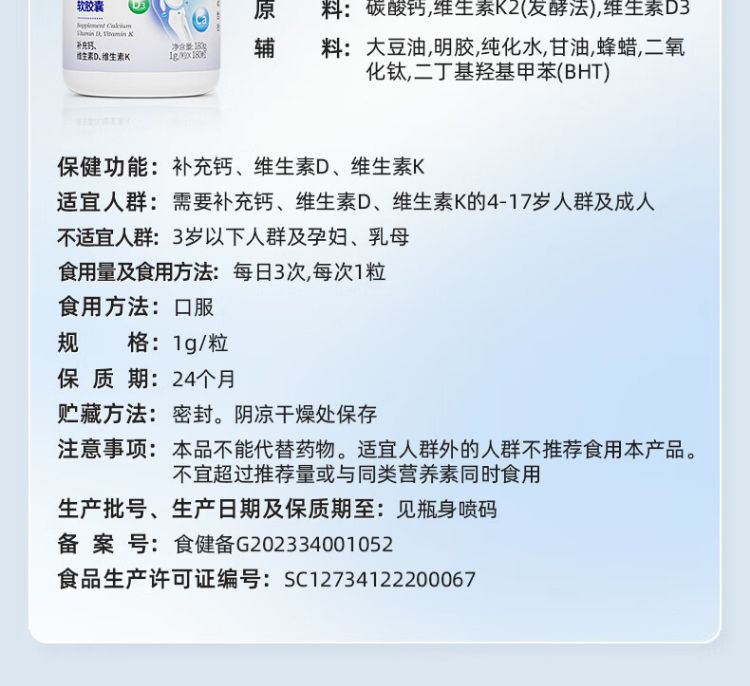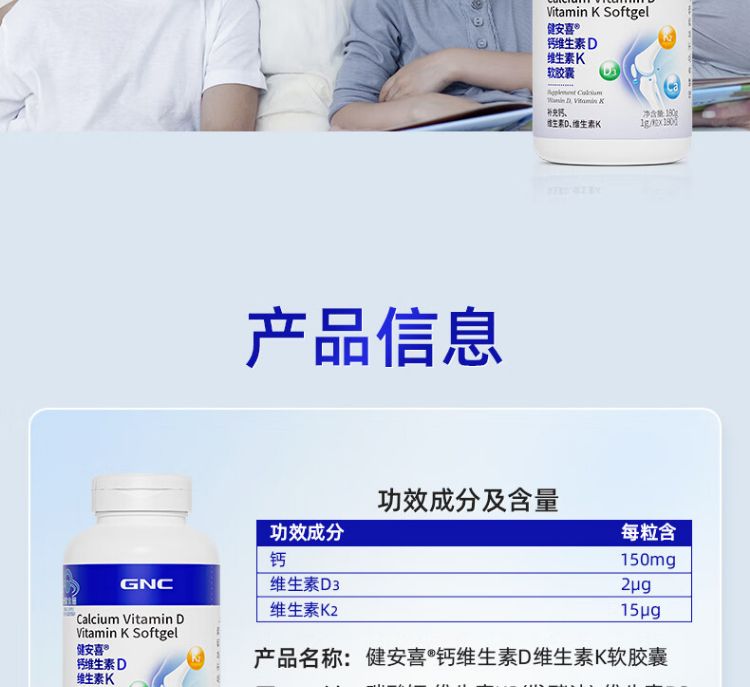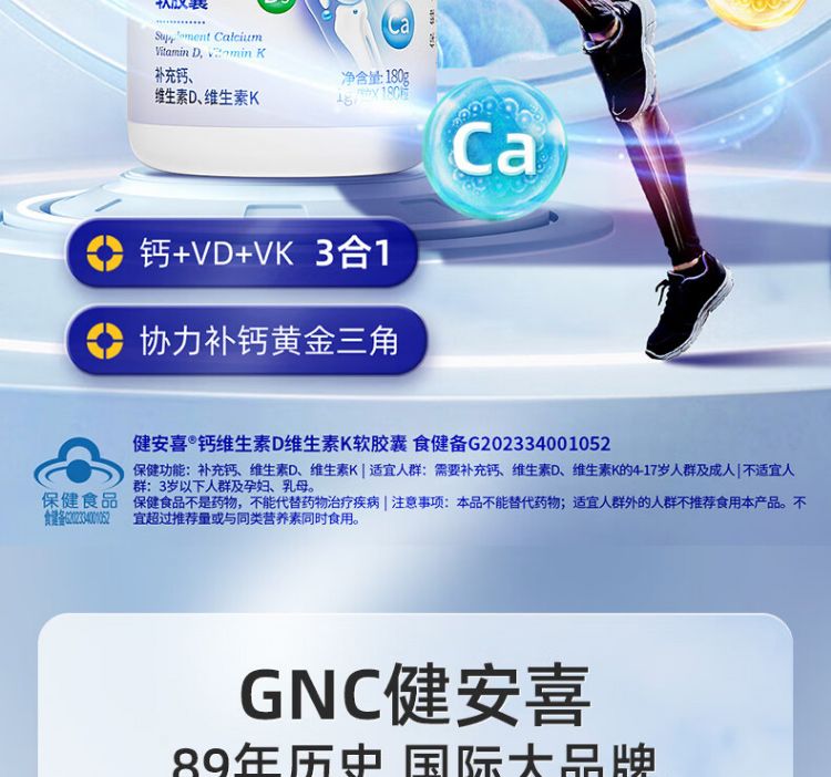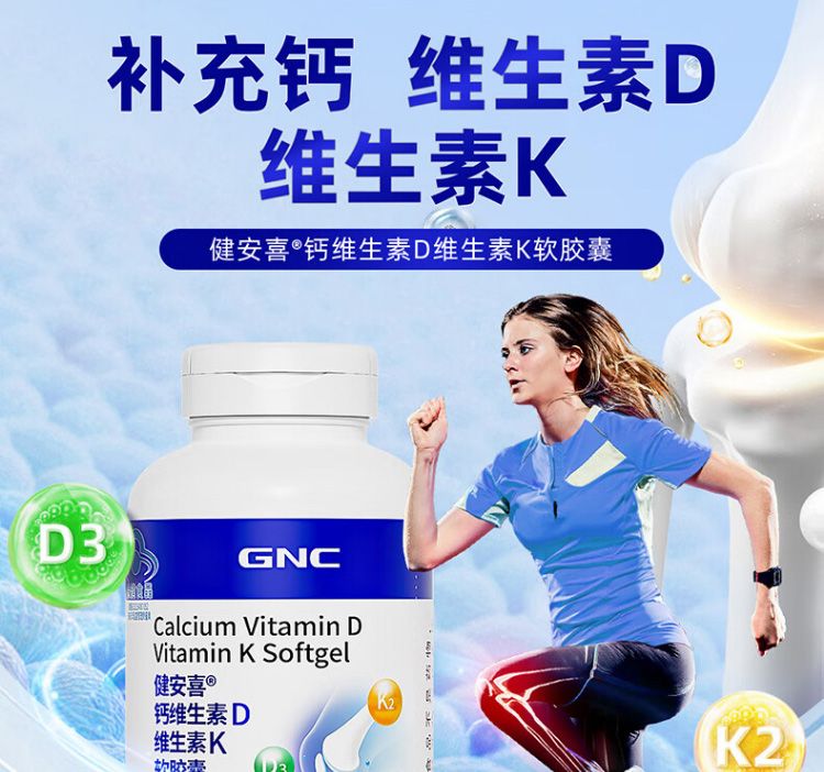 商品名称:GNC/健安喜 钙维生素D维生素K软胶囊(180片)新老包装随机发货