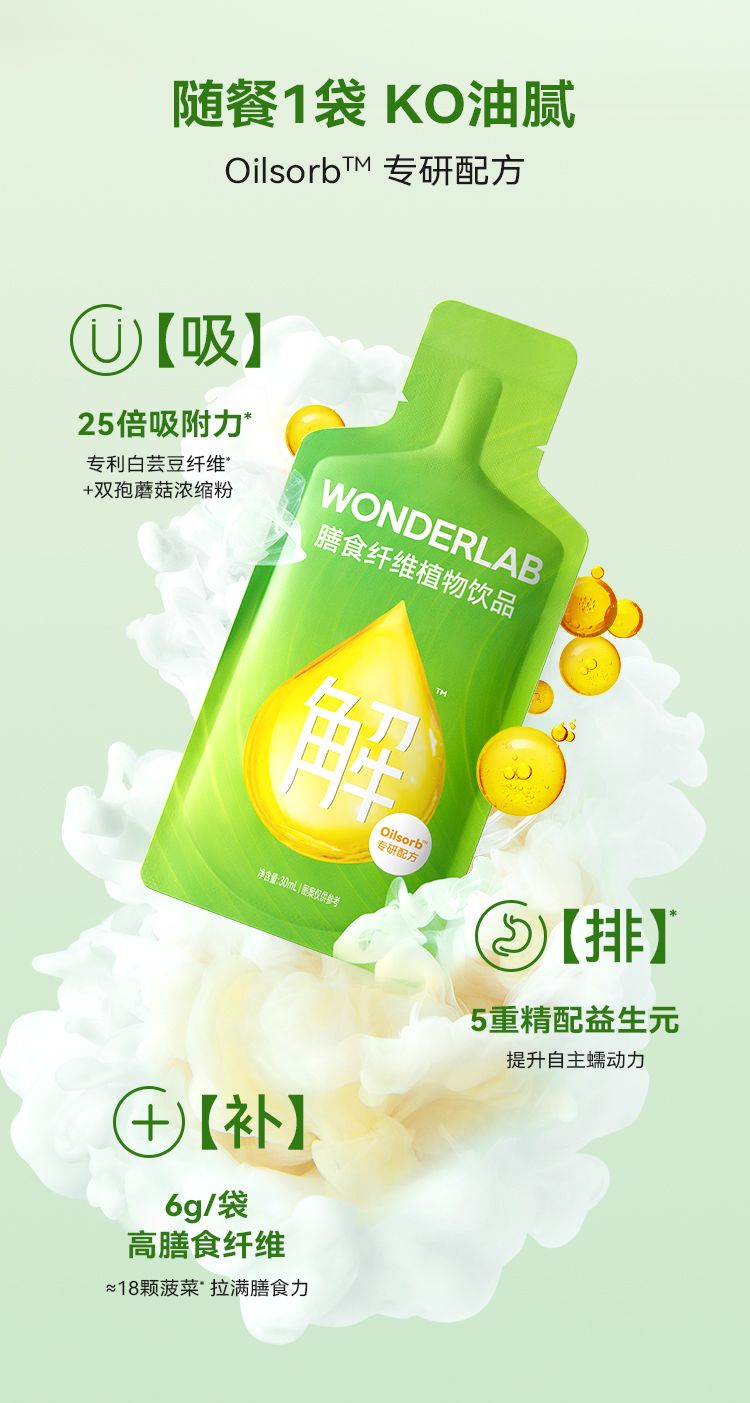 万益蓝WonderLab 膳食纤维大餐排油植物饮品 原味(30ml*5袋)