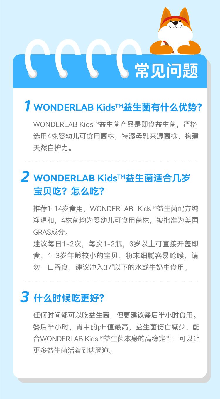 万益蓝WonderLab_Kids 双益贝护儿童益生菌即食乳酸菌食品(2g/瓶*30瓶)