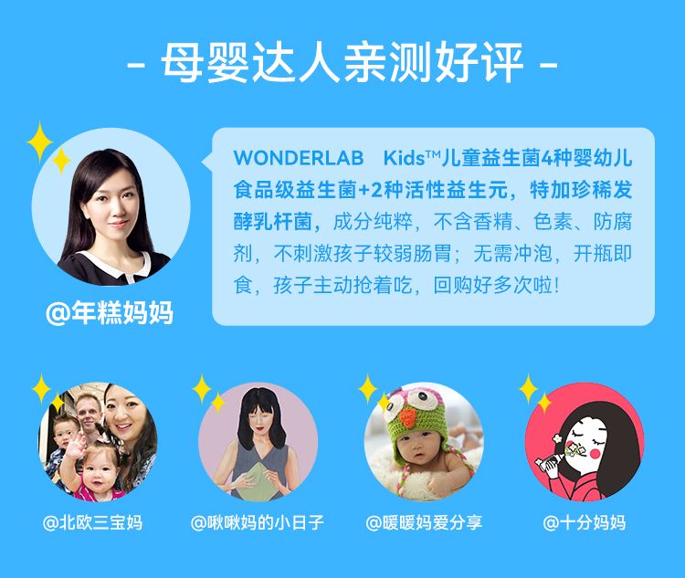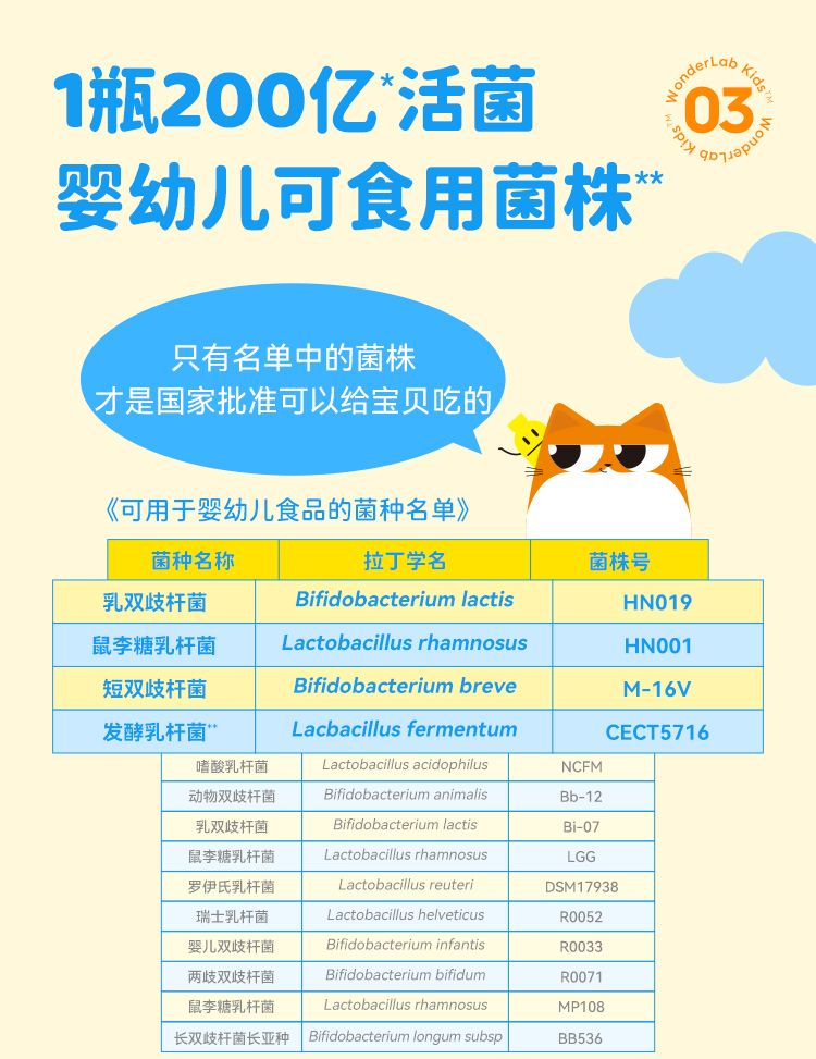 商品名称:万益蓝WonderLab_Kids 双益贝护儿童益生菌即食乳酸菌食品(2g/瓶*30瓶)
