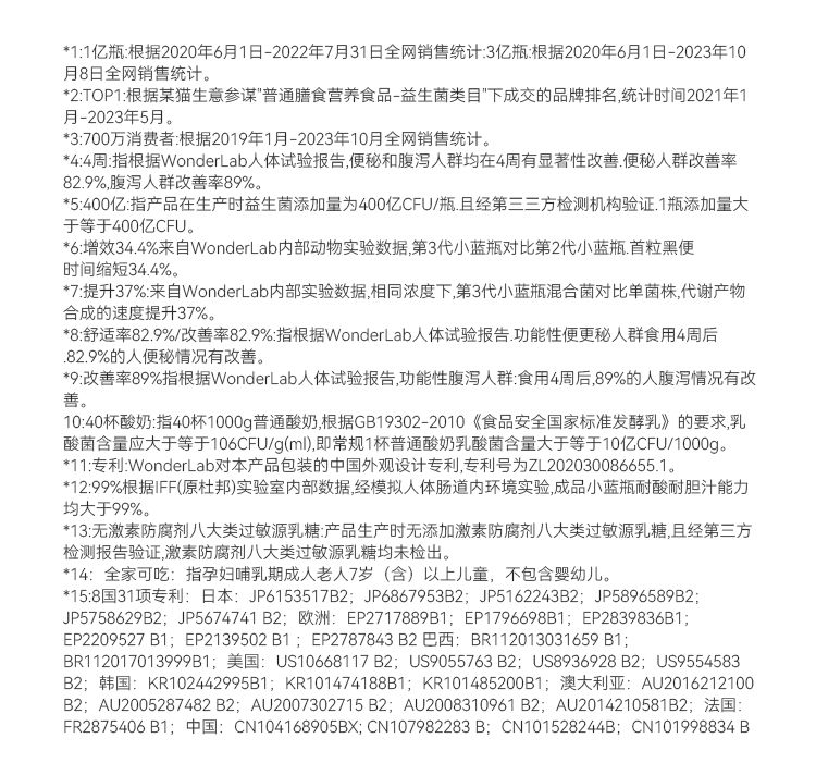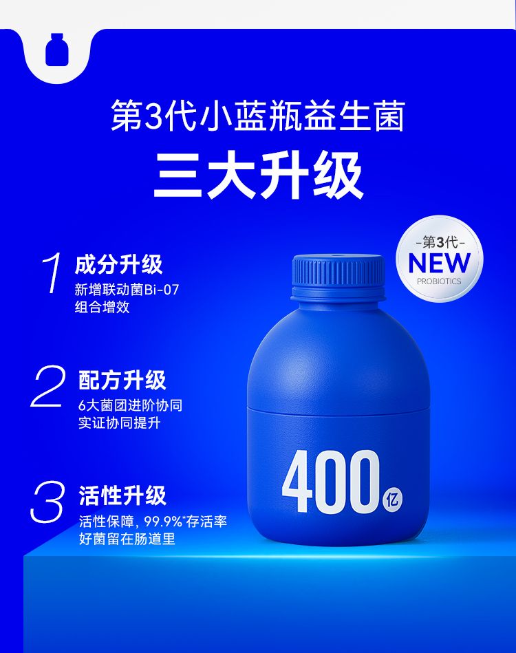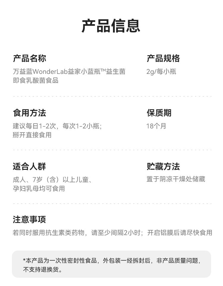 商品名称:万益蓝WonderLab 益家小蓝瓶 肠道帮手即食益生菌(2g/瓶*40瓶)