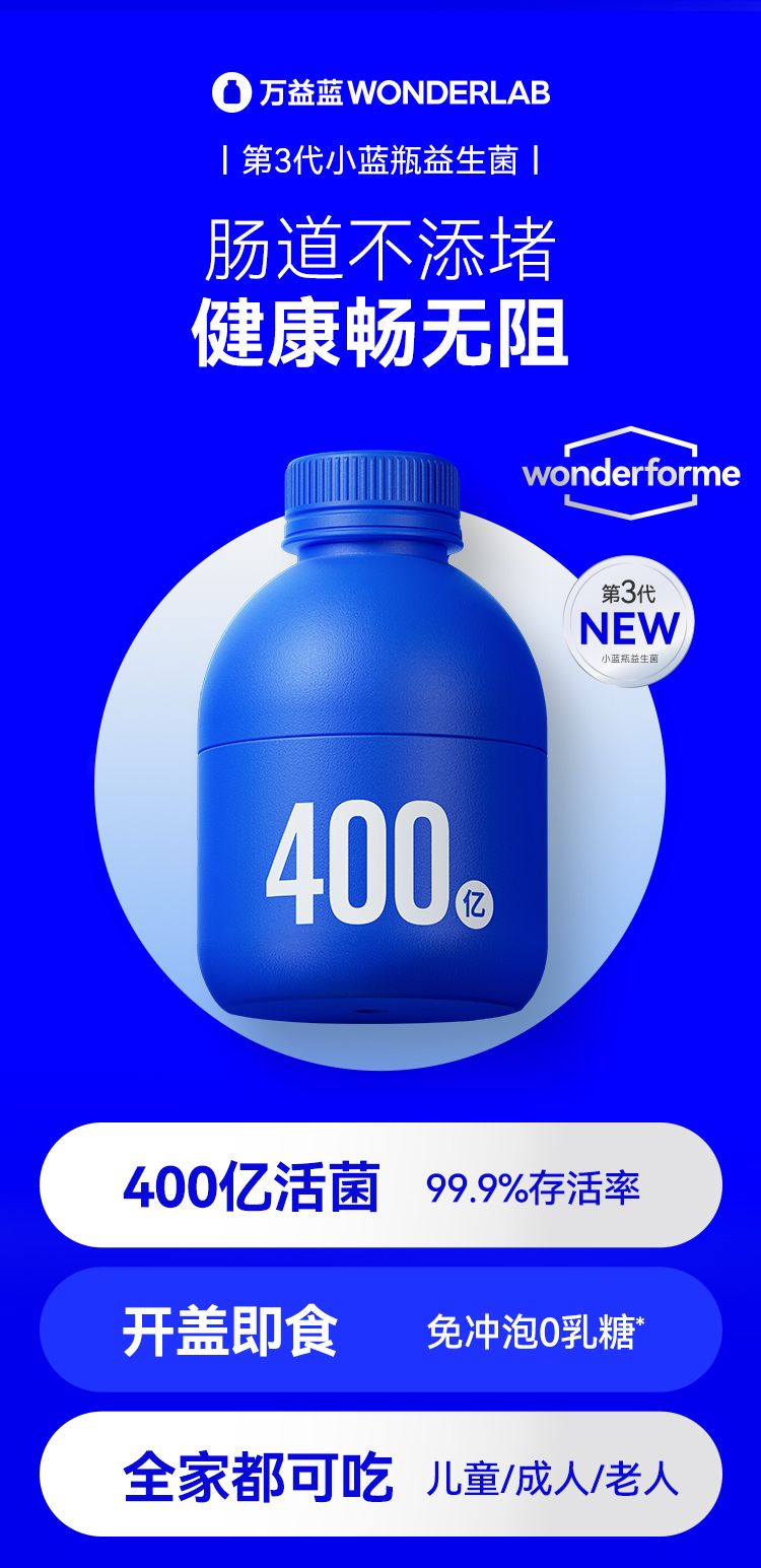 万益蓝WonderLab 益家小蓝瓶 肠道帮手即食益生菌(2g/瓶*40瓶)