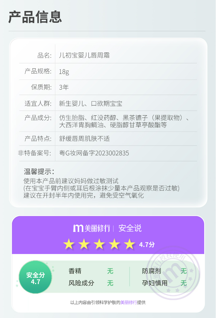 商品名称:BABETRUE儿初宝 婴幼儿唇周霜(18g/支)