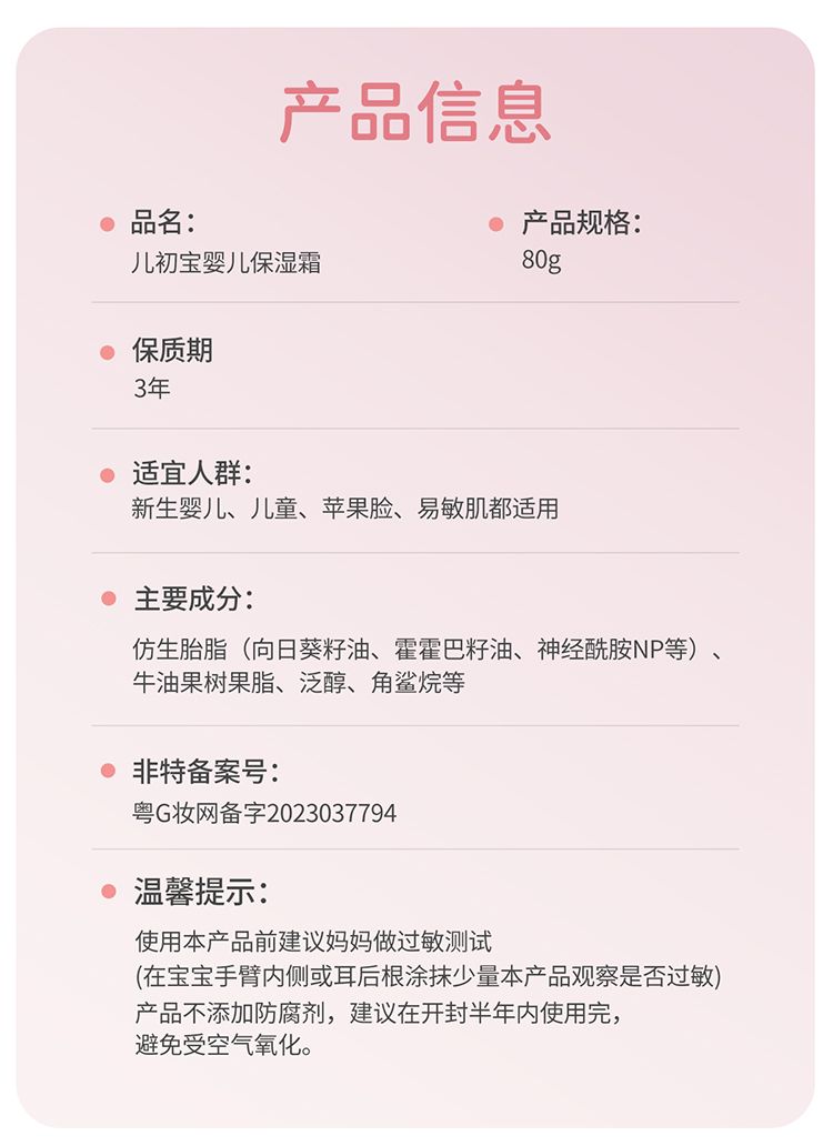 商品名称:BABETRUE儿初宝 婴幼儿保湿霜(80g/支)
