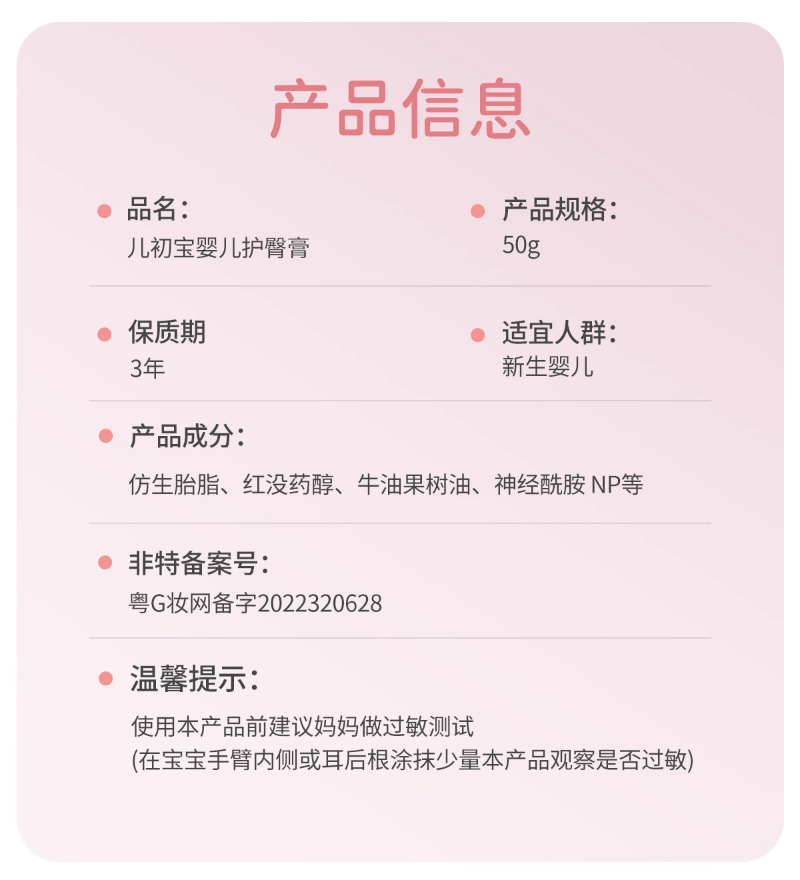 商品名称:BABETRUE儿初宝 婴幼儿护臀膏(50g/支)