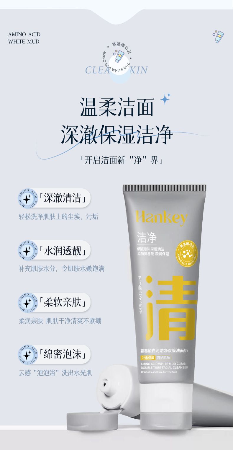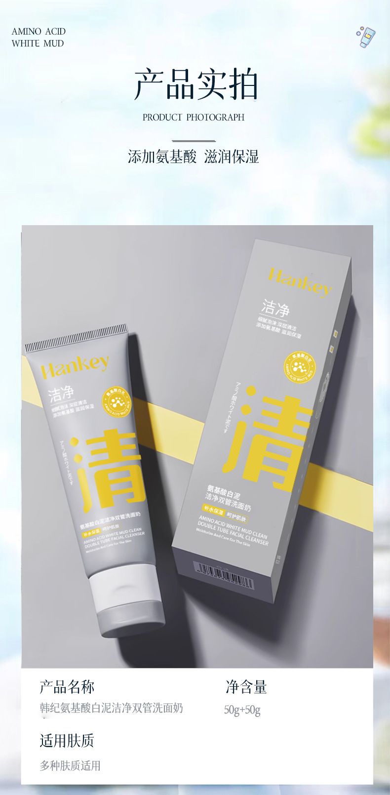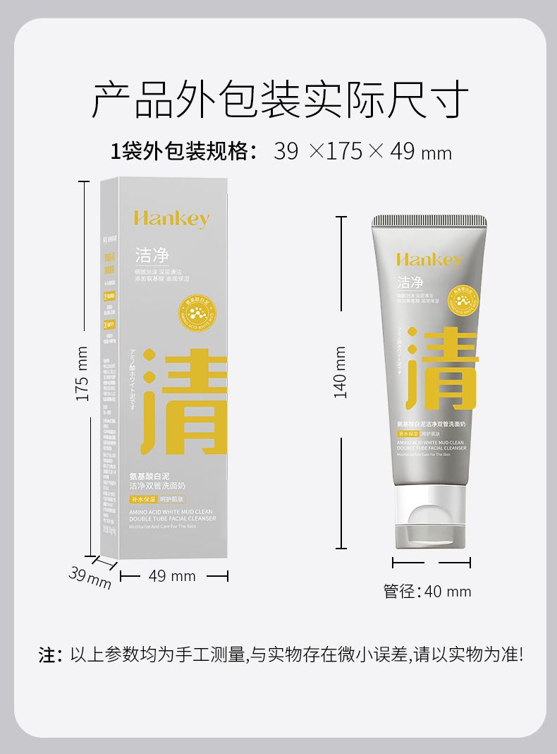 商品名称:Hankey/韩纪 氨基酸白泥洁净双管洗面奶50g+50g