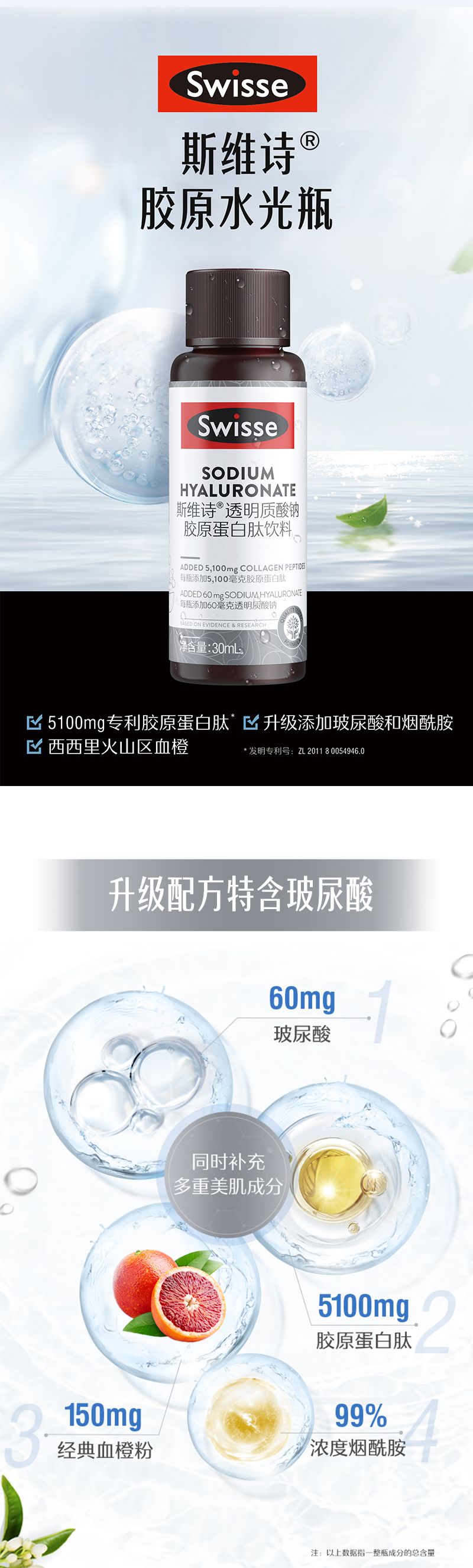 商品名称:(买一送一)Swisse/斯维诗 水光瓶30ml*10+夜胶胶原蛋白30ml*10共两件