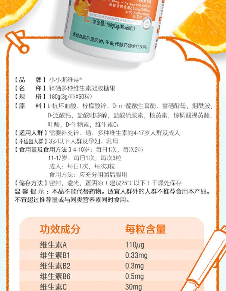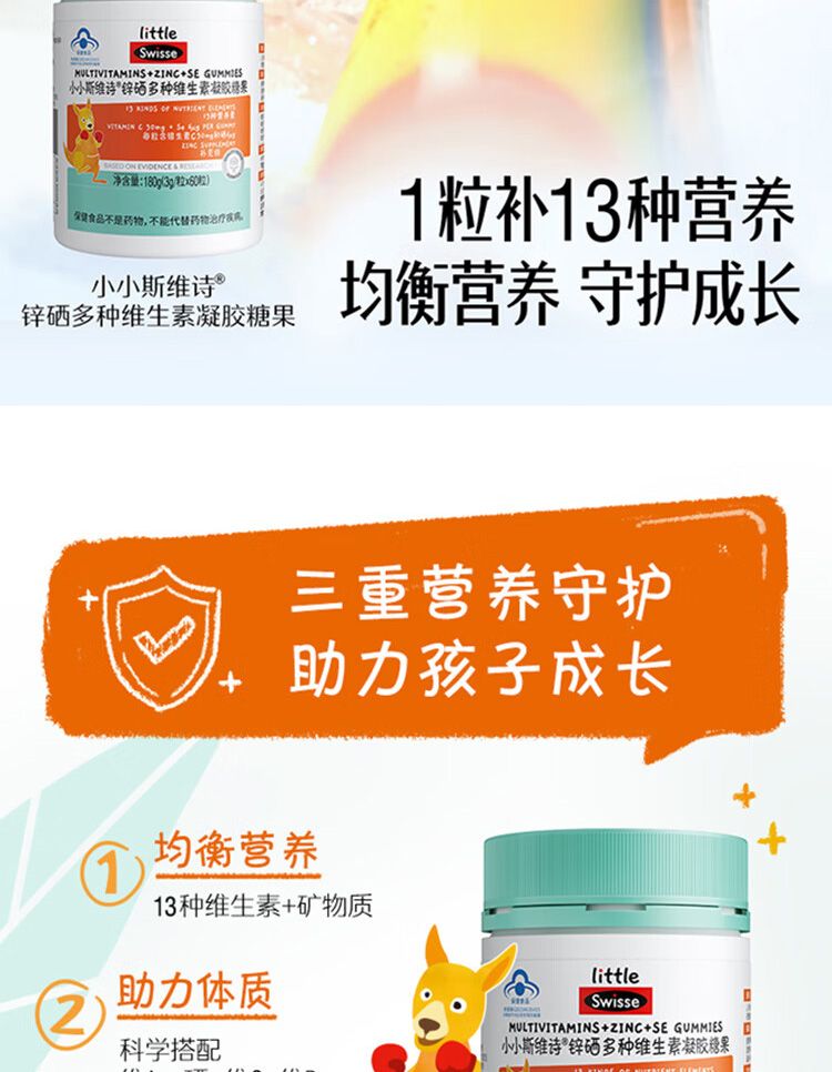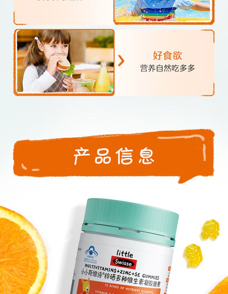 商品名称:Swisse/斯维诗 儿童锌硒多种维生素凝胶糖果(60粒1瓶)