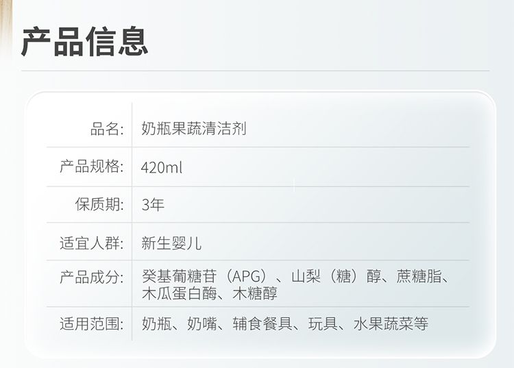 商品名称:BABETRUE儿初宝 婴幼儿奶瓶清洗剂(420ml/瓶)