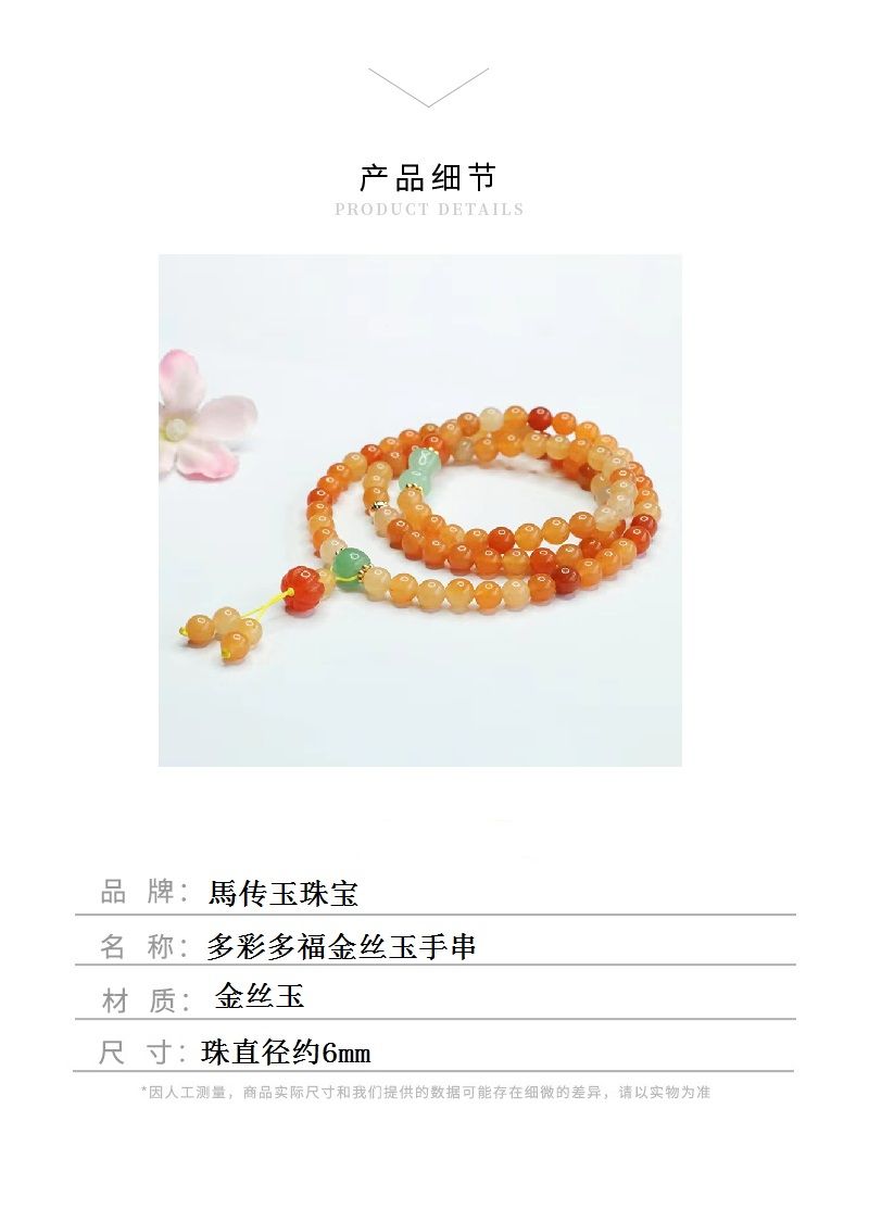 商品名称:馬传玉 多彩多福金丝玉手串6mm MCY087