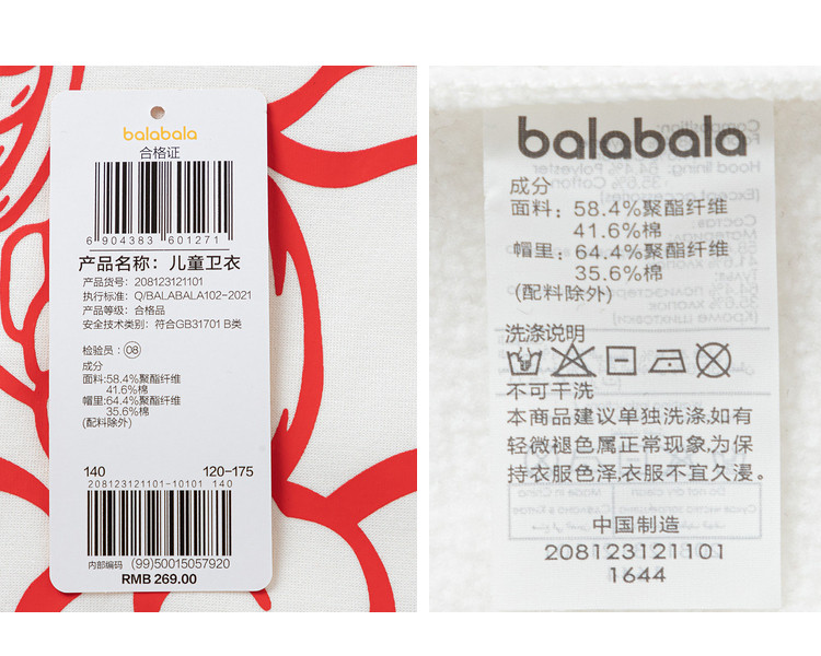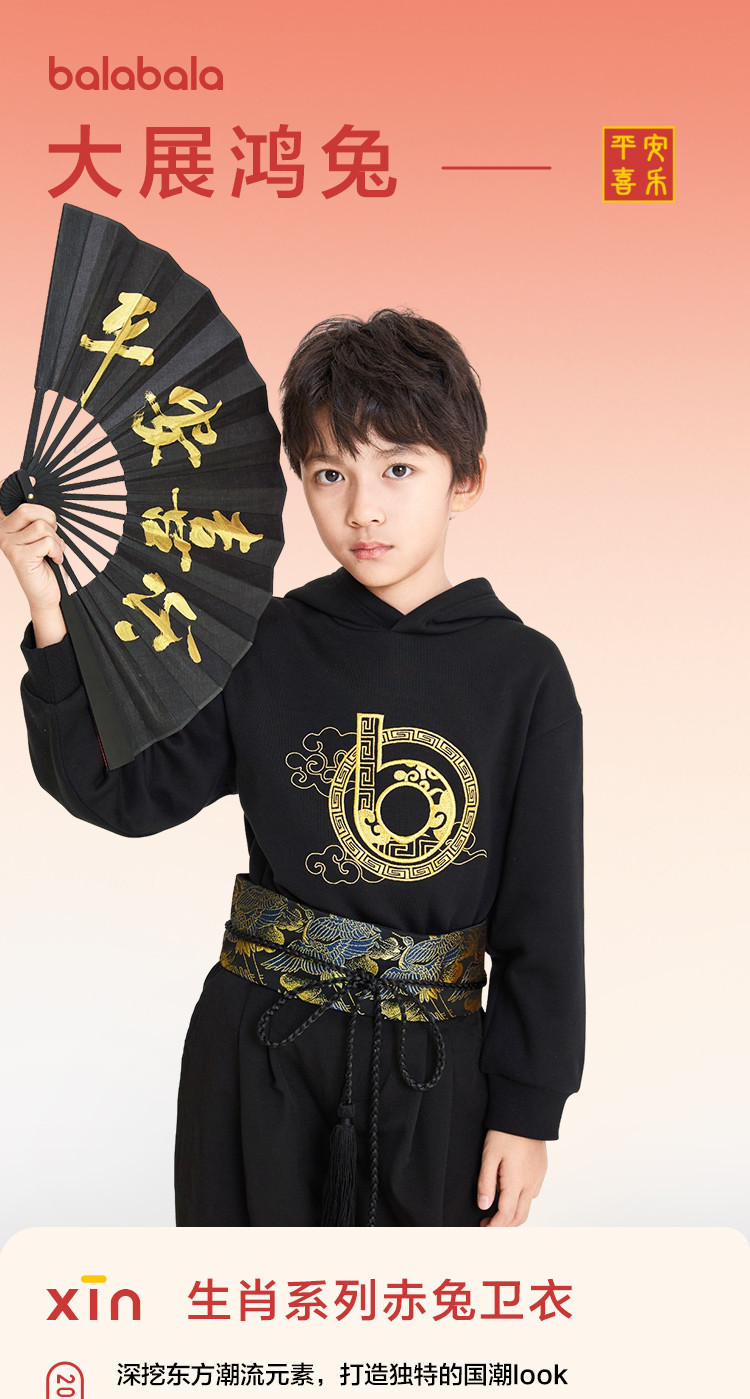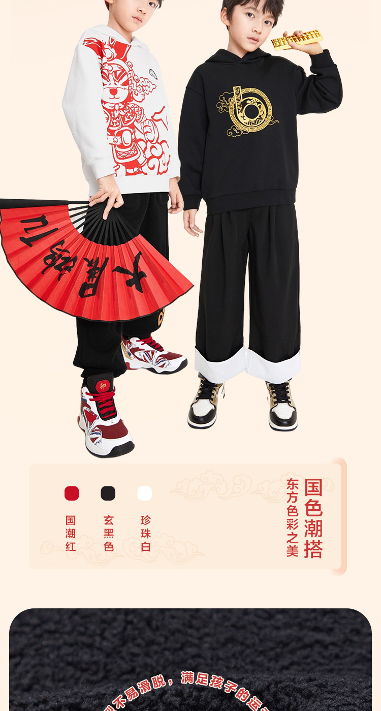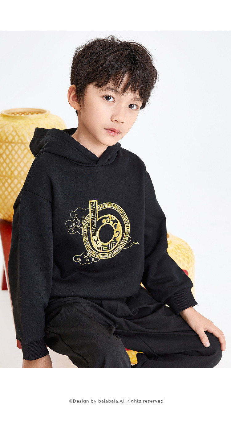 商品名称:内里加绒国潮印花童装男童宽松版型春秋装儿童卫衣中大童连帽上衣 869317