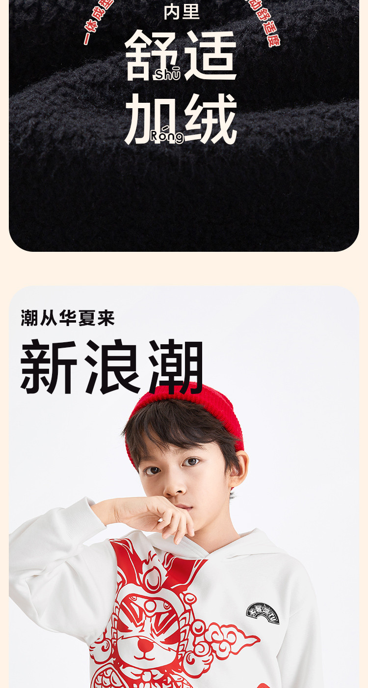 内里加绒国潮印花童装男童宽松版型春秋装儿童卫衣中大童连帽上衣 869317