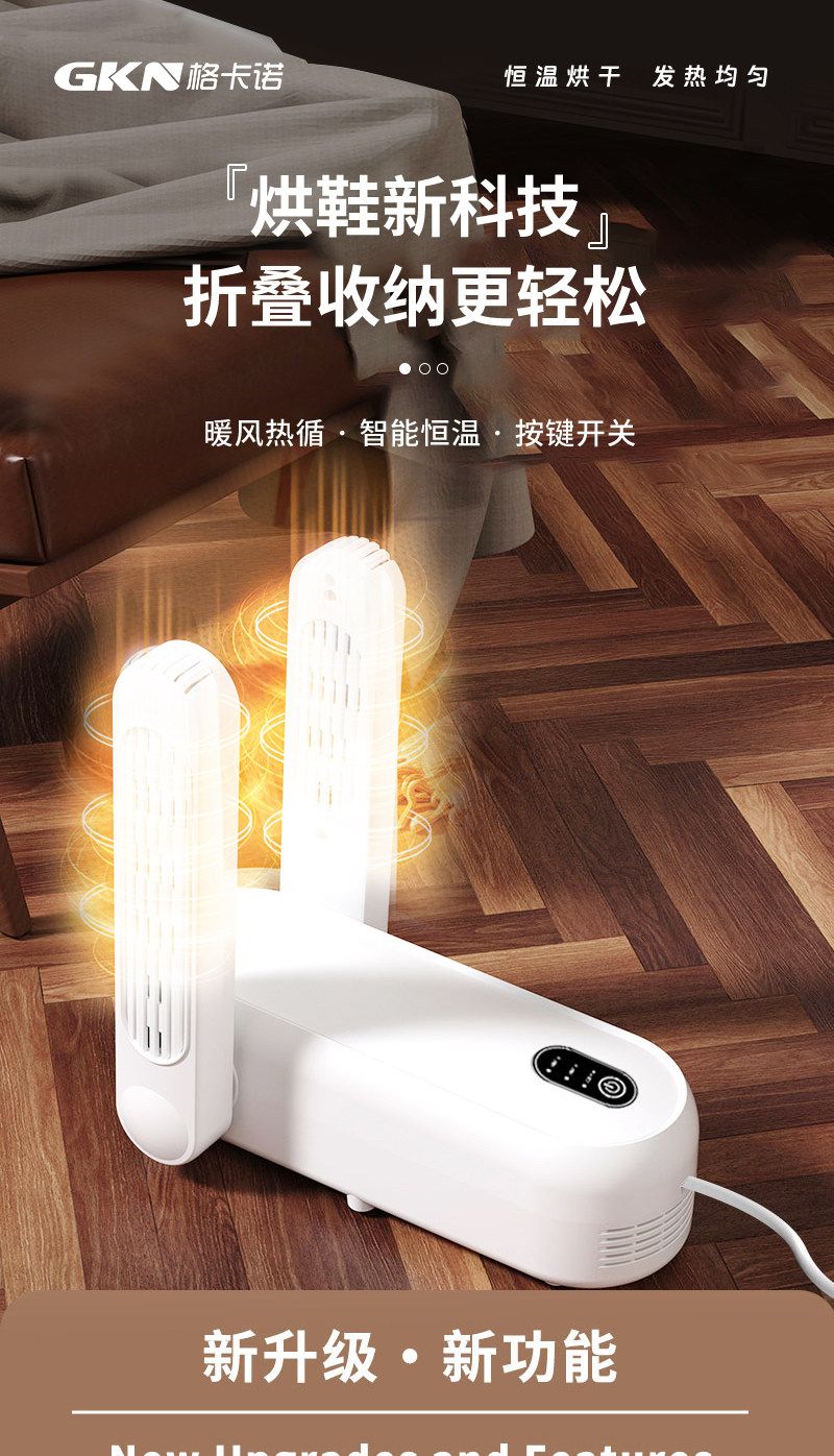 格卡诺烘鞋器除臭祛杀菌暖鞋神器宿舍家用烘鞋速干机烤鞋H13(白色)