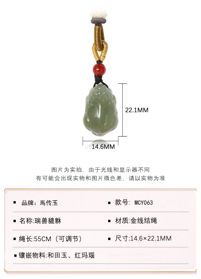 商品名称:馬传玉 瑞兽貔貅和田玉吊坠 MCY063