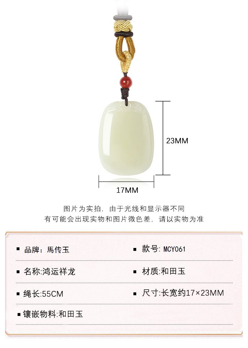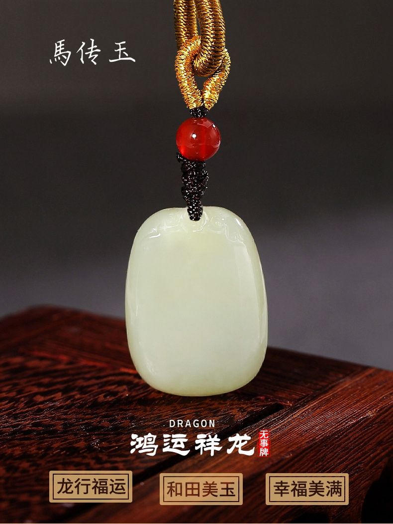 商品名称:馬传玉 鸿运祥龙和田玉无事牌吊坠 MCY061