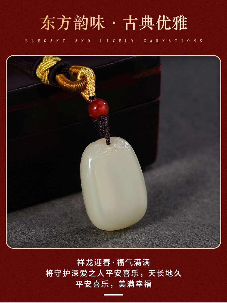 馬传玉 鸿运祥龙和田玉无事牌吊坠 MCY061